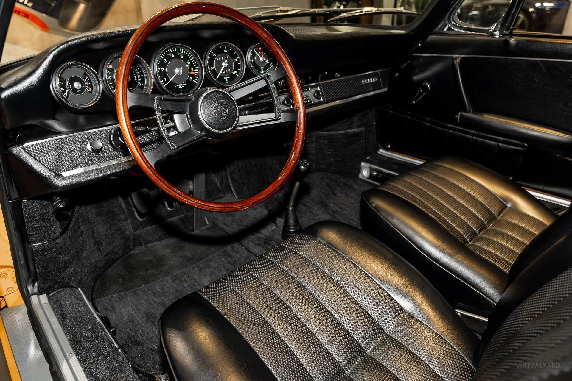 This 1967 Porsche 911 S Targa was delivered on the 8th of May 1967 in Germany and is one of 483 soft-window 911 S Targas. It spent time in California and was owned by the CEO of Sony. After it was imported to Australia by Porsche Classic in 1999, a subsequent 7-year restoration from 2016 to 2023 by a Porsche specialist in Adelaide included repainting the bodywork in Yellow Bahama, reupholstering the interior in black leatherette, and rebuilding the 2.0-litre flat-six and dogleg five-speed manual transaxle. Equipment includes 15″ Fuchs wheels, a Webasto Heater, a wood-rimmed steering wheel, and a Becker radio.