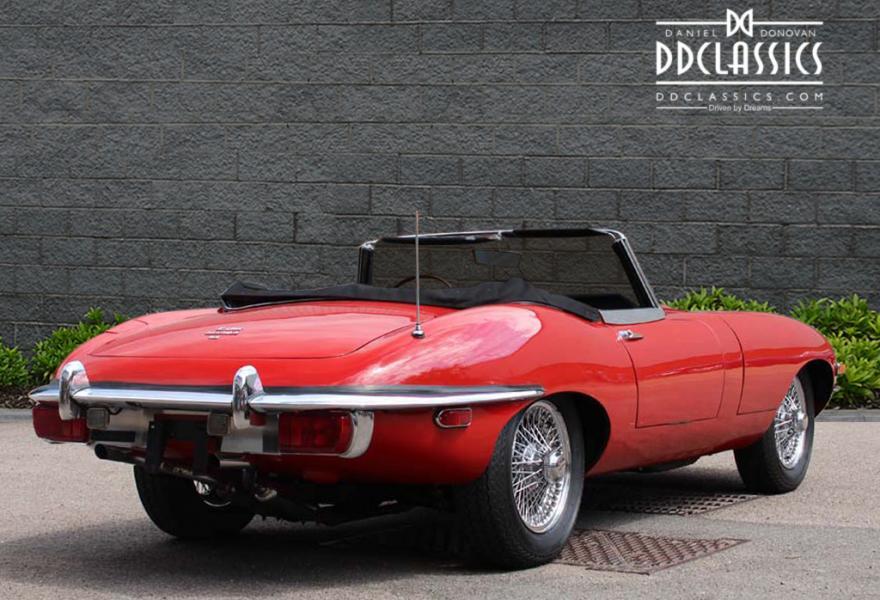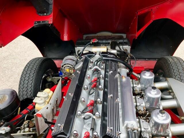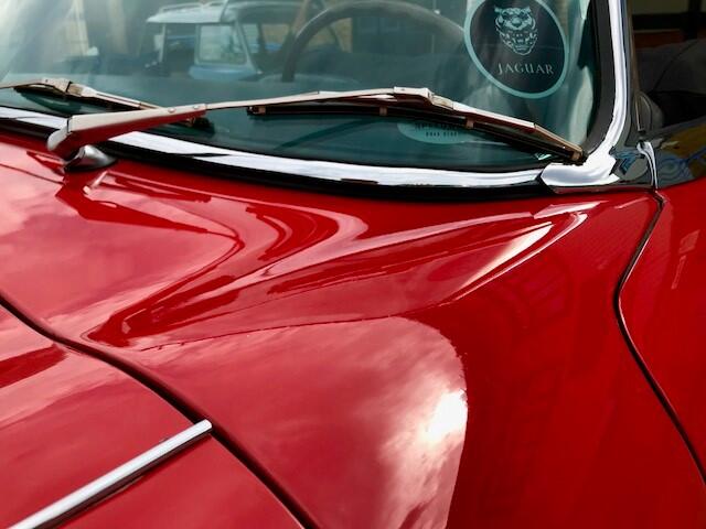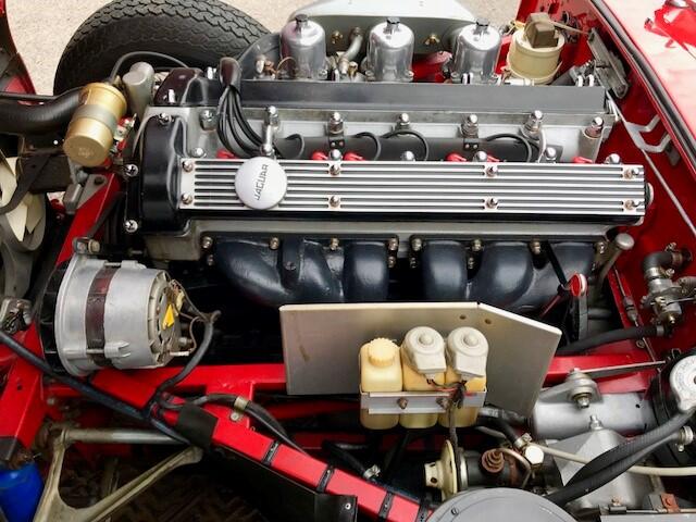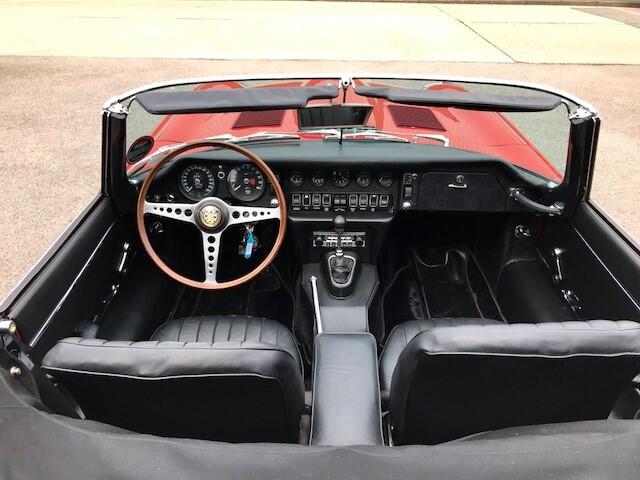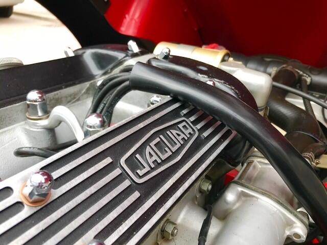 Finished in Signal Red coachwork with Ebony Black hide and matching Black vinyl soft top. the car stands elegantly as the day it rolled off the production line with newly fitted chrome wire wheels with two ear spinners. The first owner purchased this car in Atlanta, Georgia, selling it to the second owner on March 15th, 1977. The third owner is then known to have purchased the car June 20th, 1989. He retained the car for more than twenty years, selling it in 2012. During his long-term ownership, the car spent the vast majority of its time in the Metro Atlanta where the car was restored. During the restoration, the head was removed and replaced with a Series III XJ6 head. These later heads have larger valves and breathe better than the earlier heads, which improves performance. Additionally, the car was converted to the triple SU carburetor configuration of the Series I cars (US spec Series II cars originally had twin Stromberg carburetors for emissions reasons).