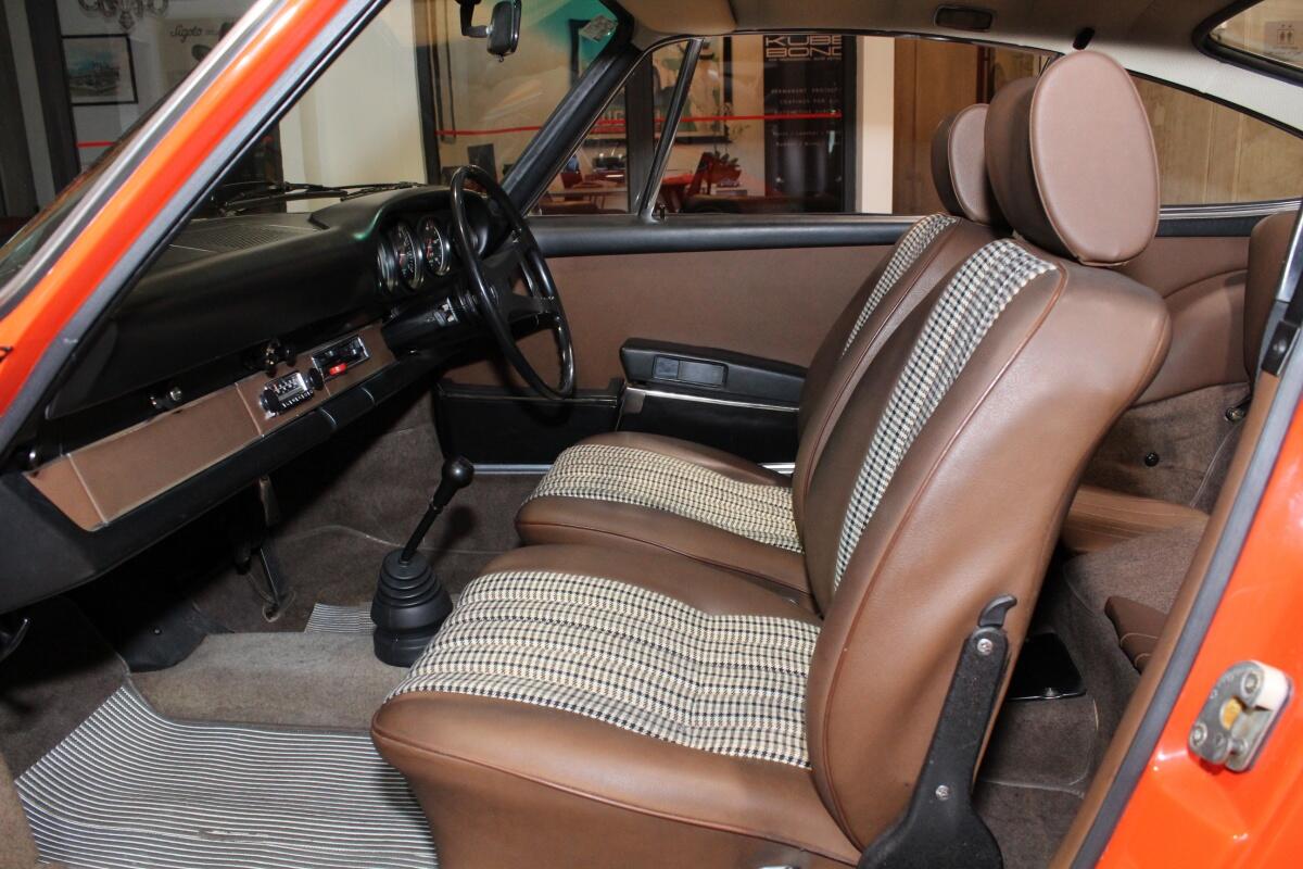Resplendent in its original Tangerine (code 2323) with brown leatherette and houndstooth inlays, the car is optioned with a rear towing hook, long range driving lights, 3 point seat belts and Blaupunkt “Frankfurt” radio.