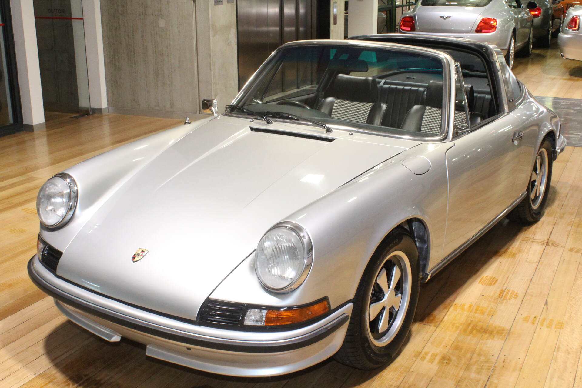 This beautifully restored classic 1973 Porsche 911 T Targa painted in the factory colour combination of metallic silver with black and houndstooth cloth interior.
