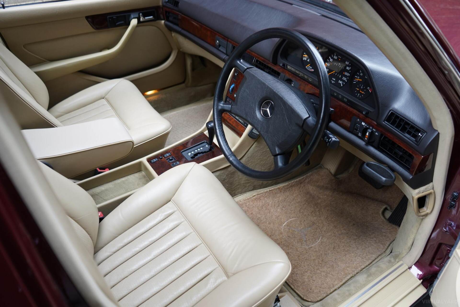 Just arrived! This one owner 1987 Mercedes Benz 420SEL sold new by 3 Point Motors in Fairfield. The car is in unmarked, original Metallic Padjett Red with Cream leather interior, travelled only 57,912kms.