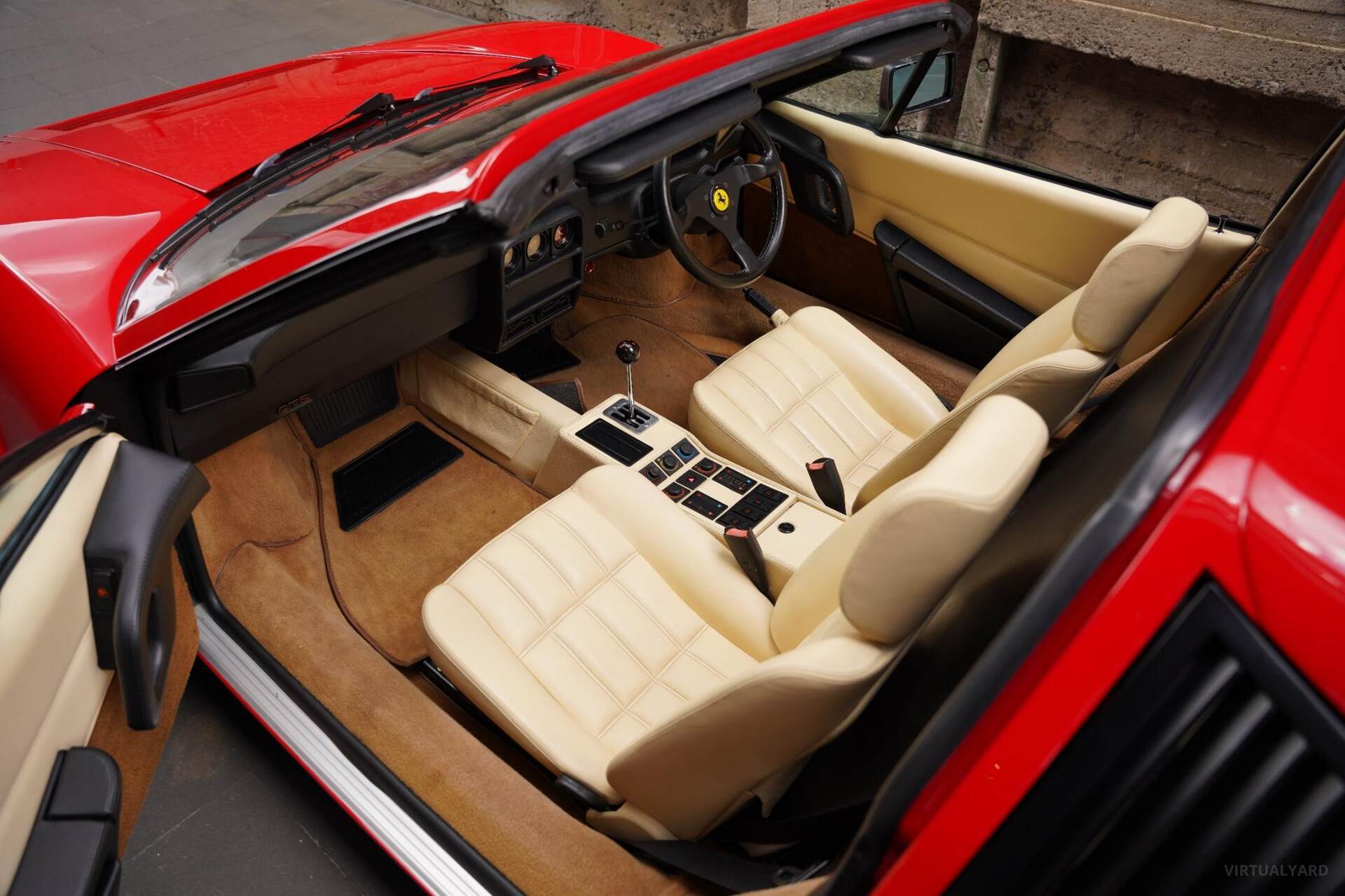 The Pininfarina-designed body is flawless, exhibiting a pristine appearance as if it were brand new. The striking Rosso Corsa paintwork is immaculate, and the exterior features, including the pop-up headlights, integrated fog lights, side air intakes, and quad exhaust tips, add to the allure of this 80s icon.