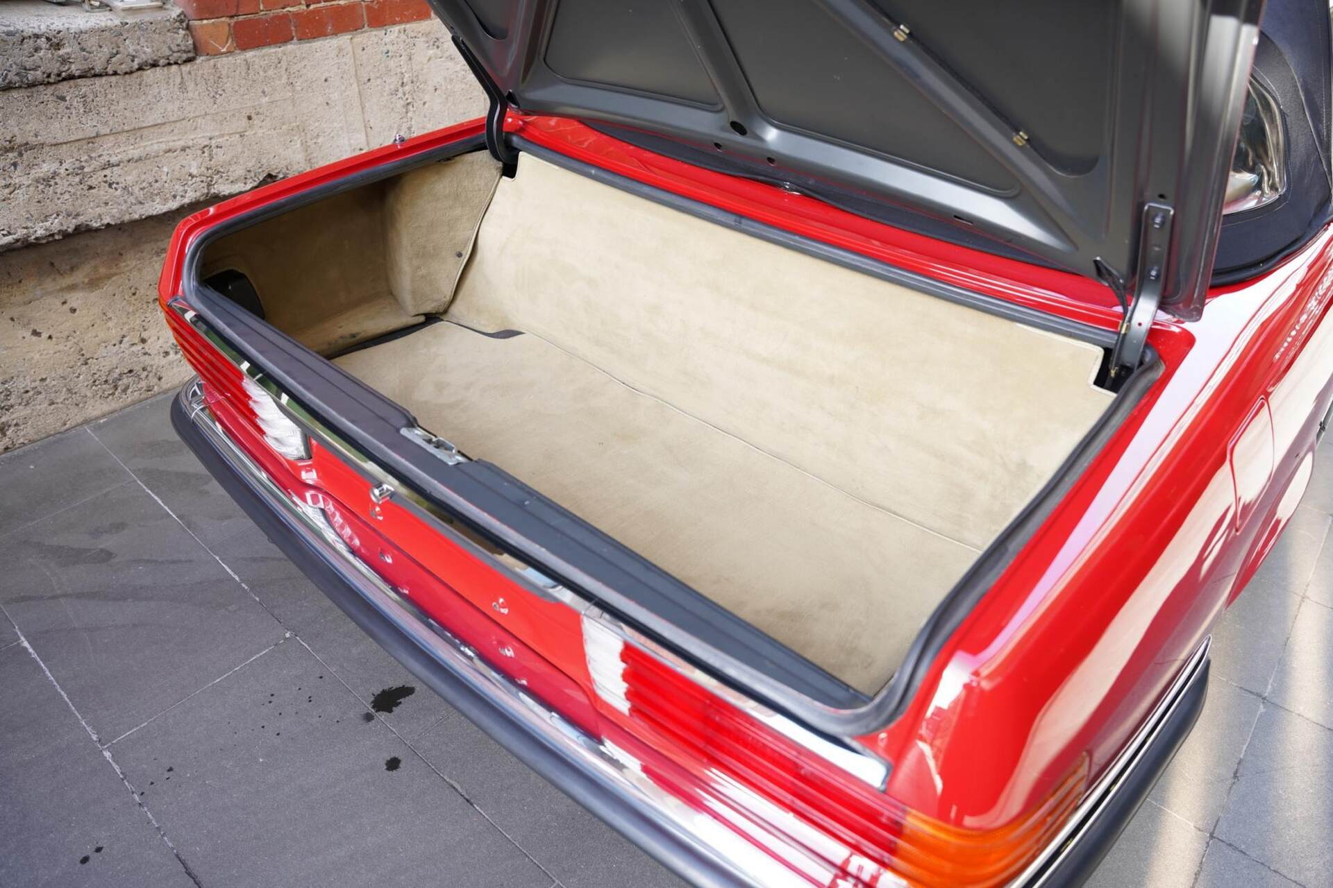 Enamelled in period classic Signal Red with a Cream leather interior.