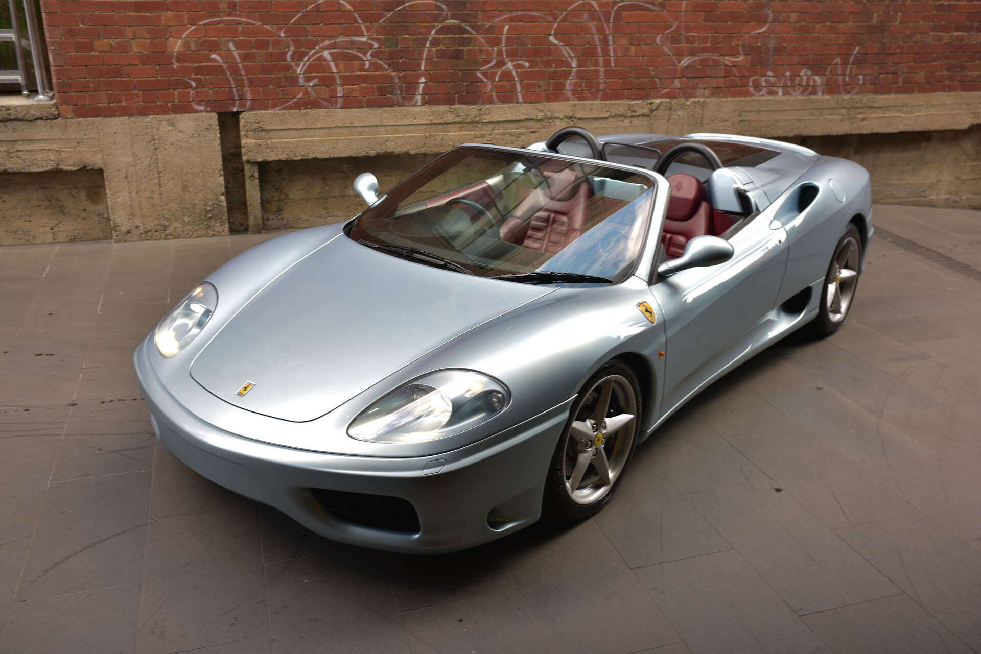 We are proud to offer this stunning and very desirable Australian Delivered 2003 Ferrari F360 F1 Spider which is finished in stunning Argento Nurburgring Coachwork with soft Bordeaux Napa Leather cabin with Navy carpets with Navy soft-top. This beautiful 3 owner Australian delivered F360 F1 Spider has just been received into our inventory part exchange on F430 Scuderia.