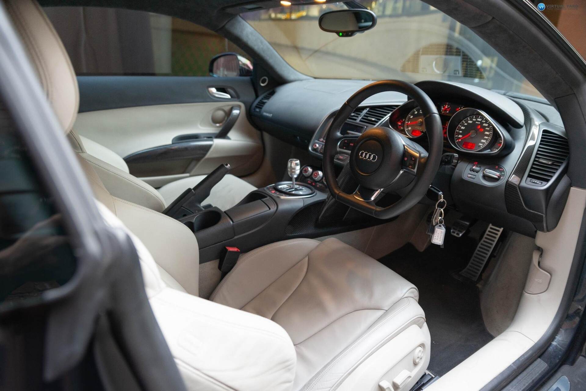 2008 Audi R8, finished in black paintwork with cream leather interior. This example has traveled 42,172km’s.