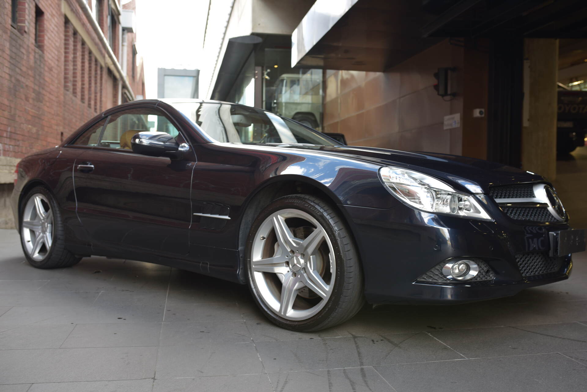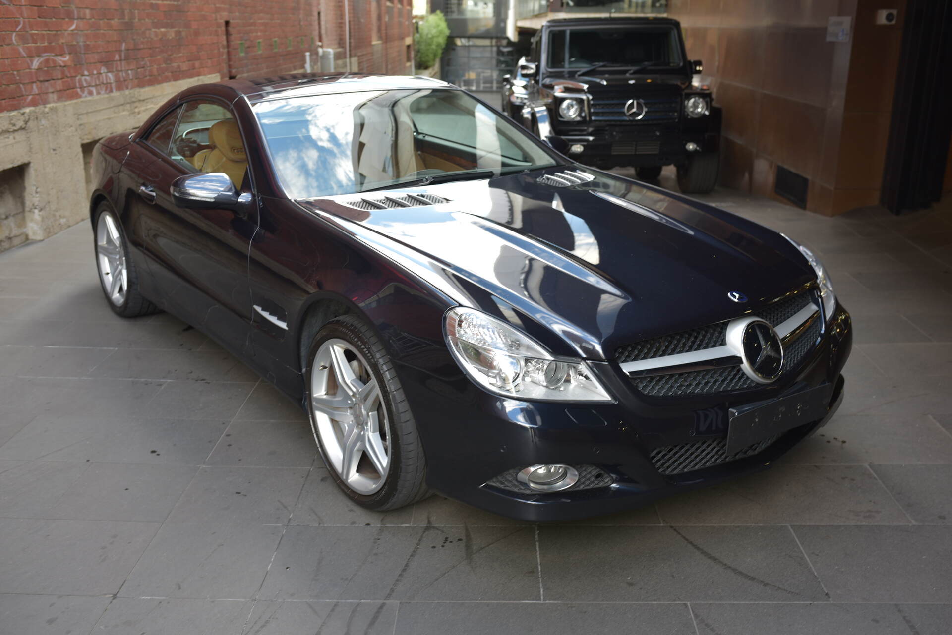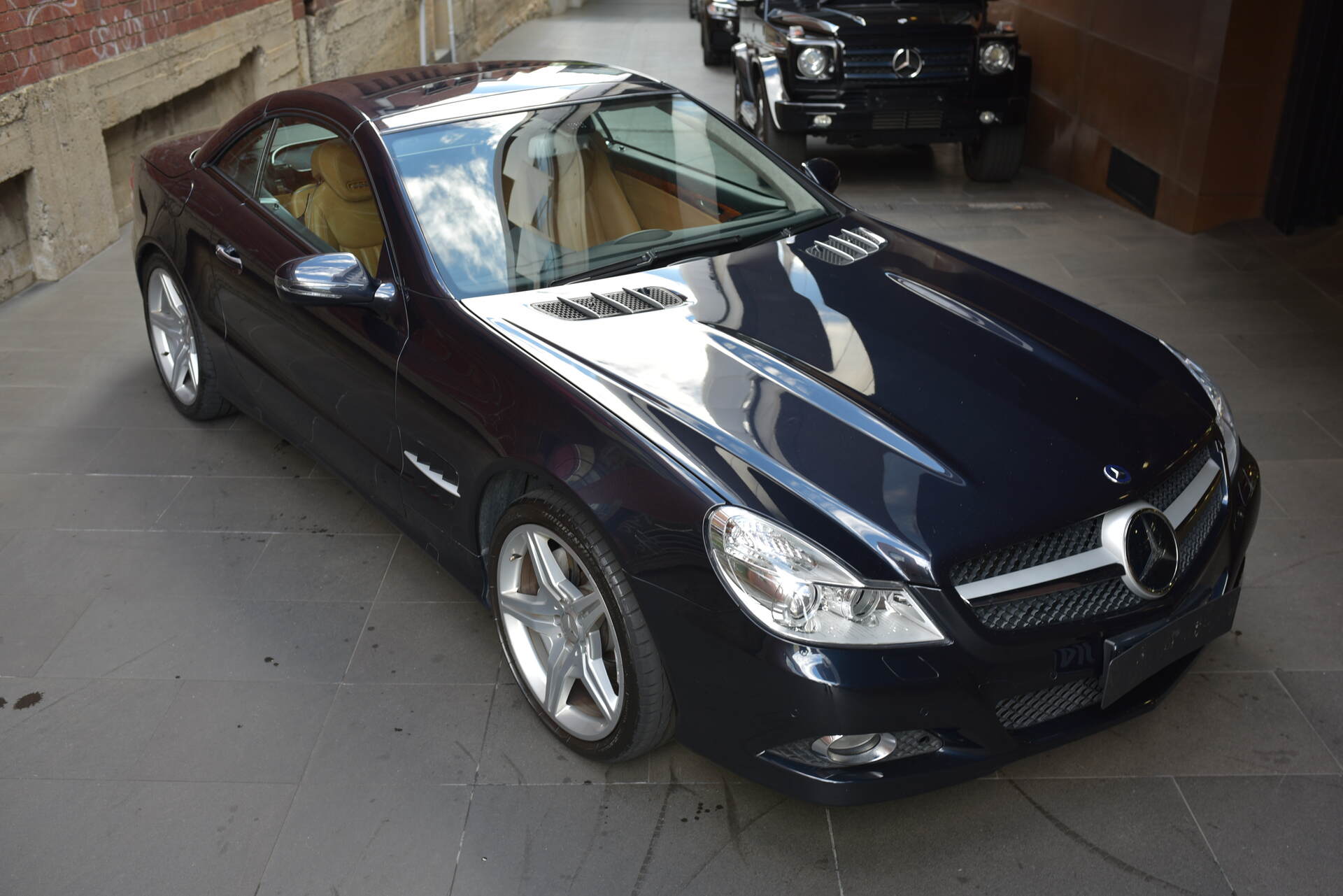 We are proud to offer this stunning and very desirable Australian Delivered '09 Mercedes SL500 AMG "Update" Convertible which is finished in the most desirable and stunning Tanzanite Blue Metallic Coachwork with soft Black Napa Leather cabin with Contrasting Stitching and matching carpets.