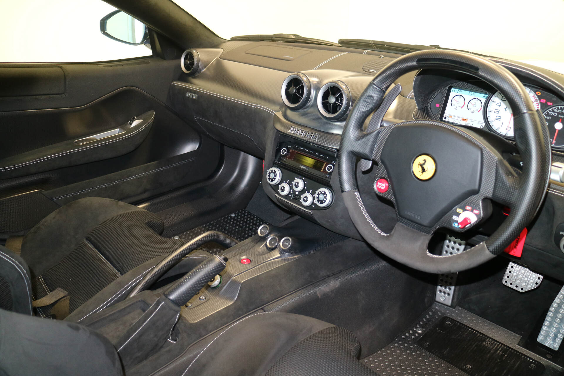 - Dark suede interior with aluminium floors and carbon fibre trim.