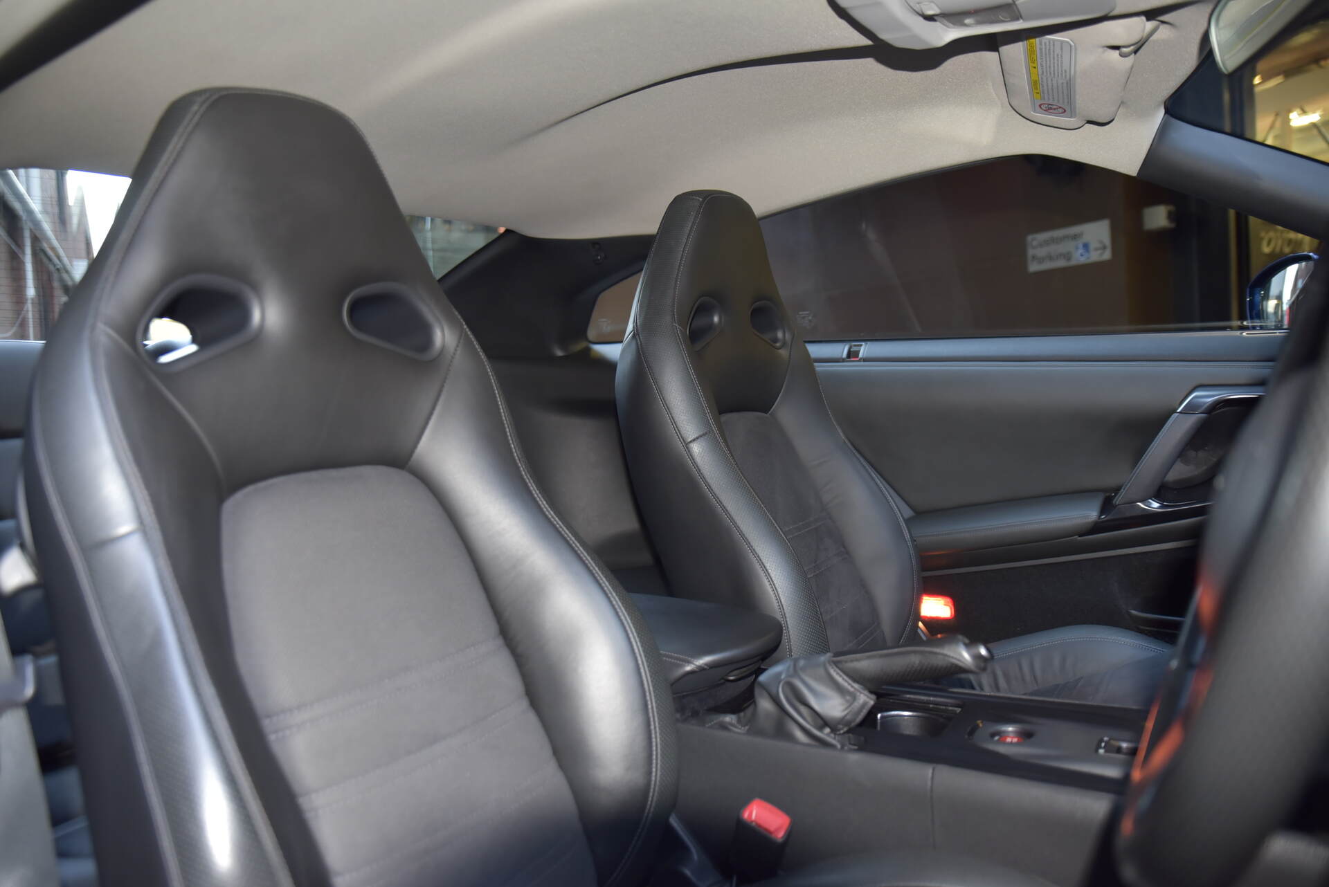 Black Leather & Alcantara Cabin with Embossed Stitching