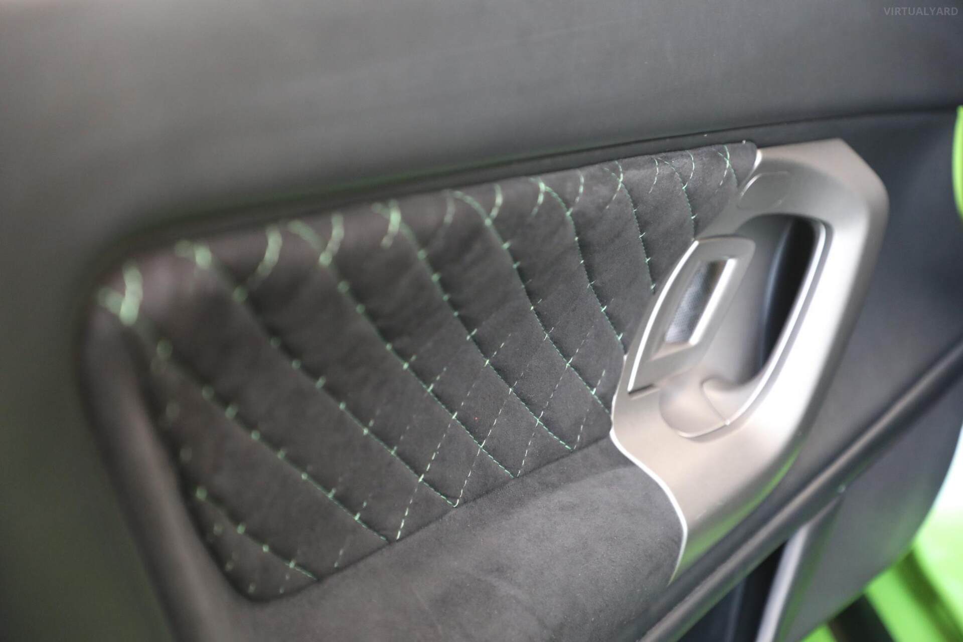 - Contrast green stitching.
