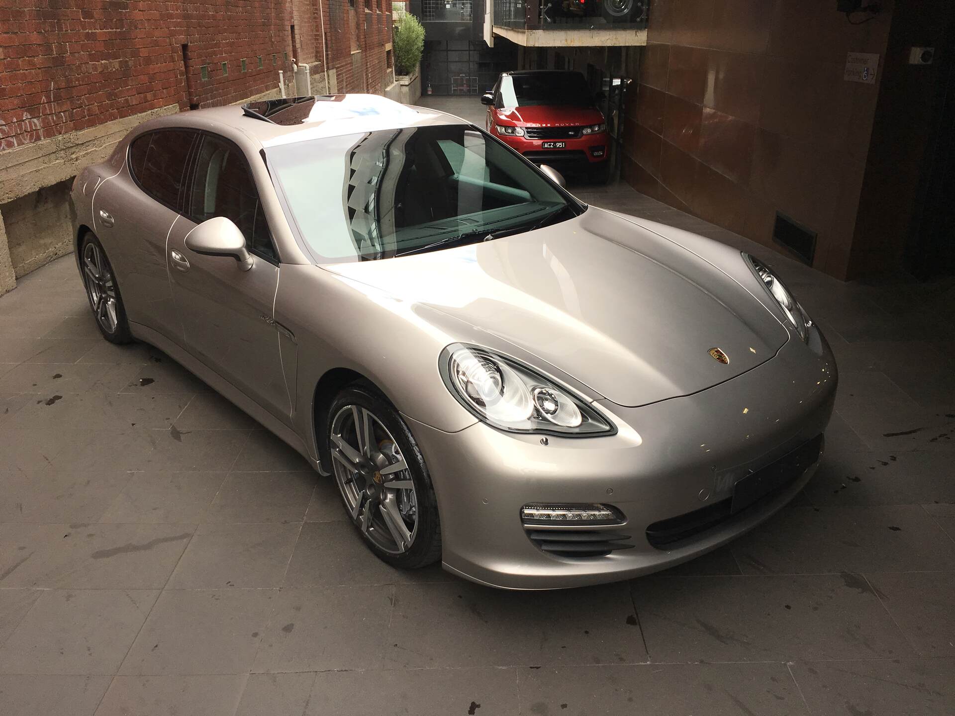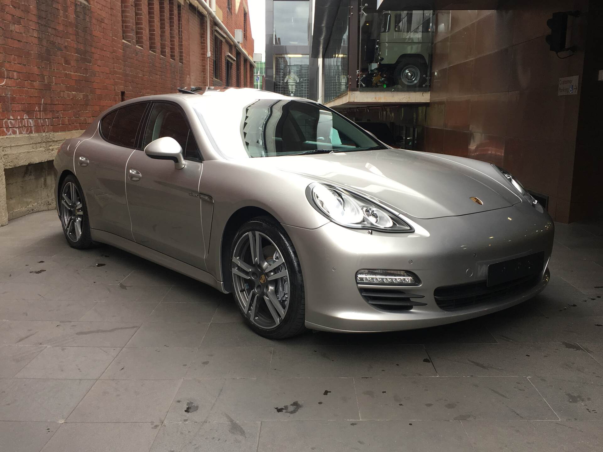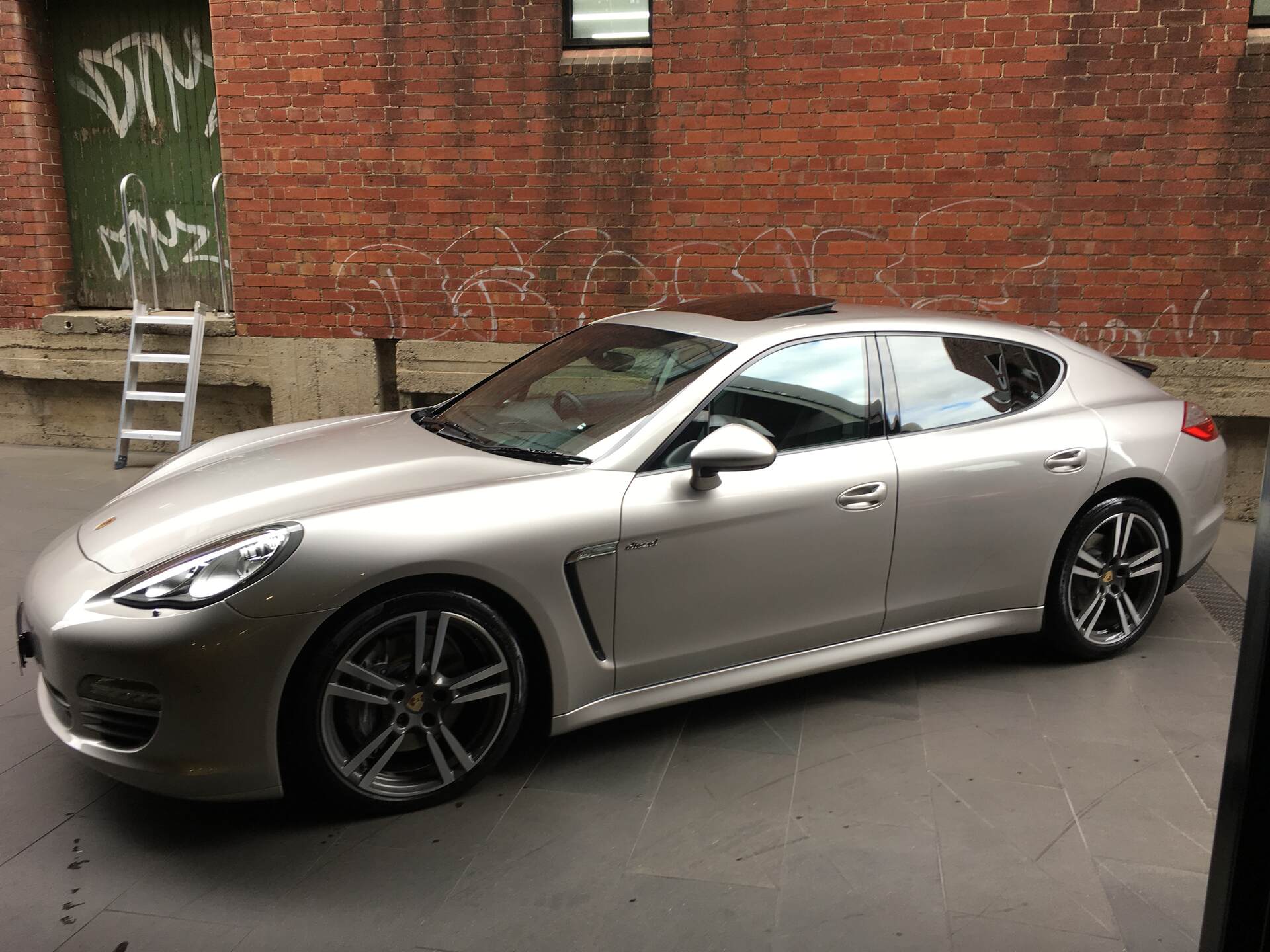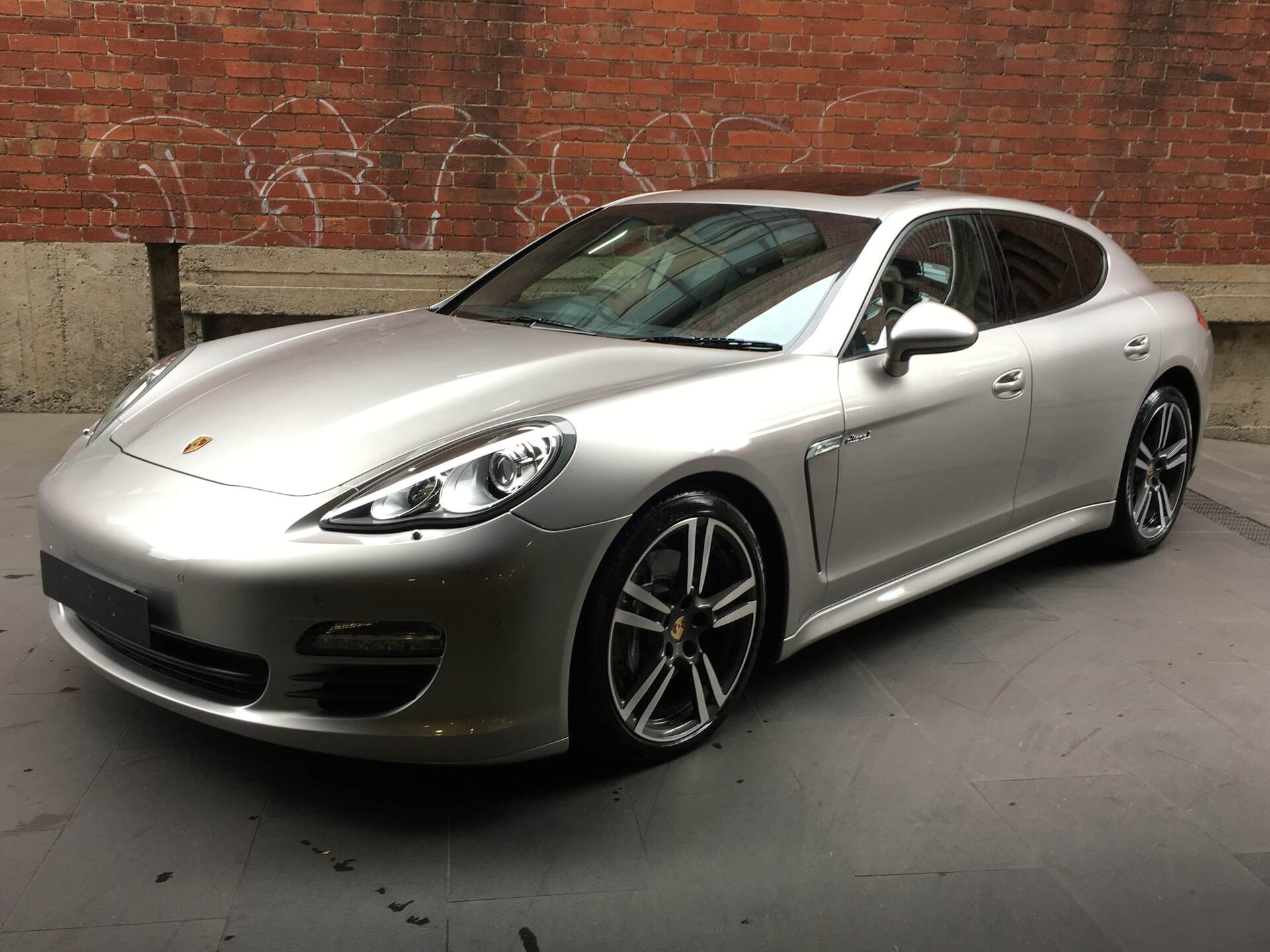We are proud to offer this stunning and highly desirable '12 Porsche Panamera V6 Diesel Sedan finished in stunning and rare Platinum Silver Metallic with soft Black Leather cabin with embossed branding package. This extremely well received, highly desired Panamera V6 Diesel is now ready for delivery immediately.