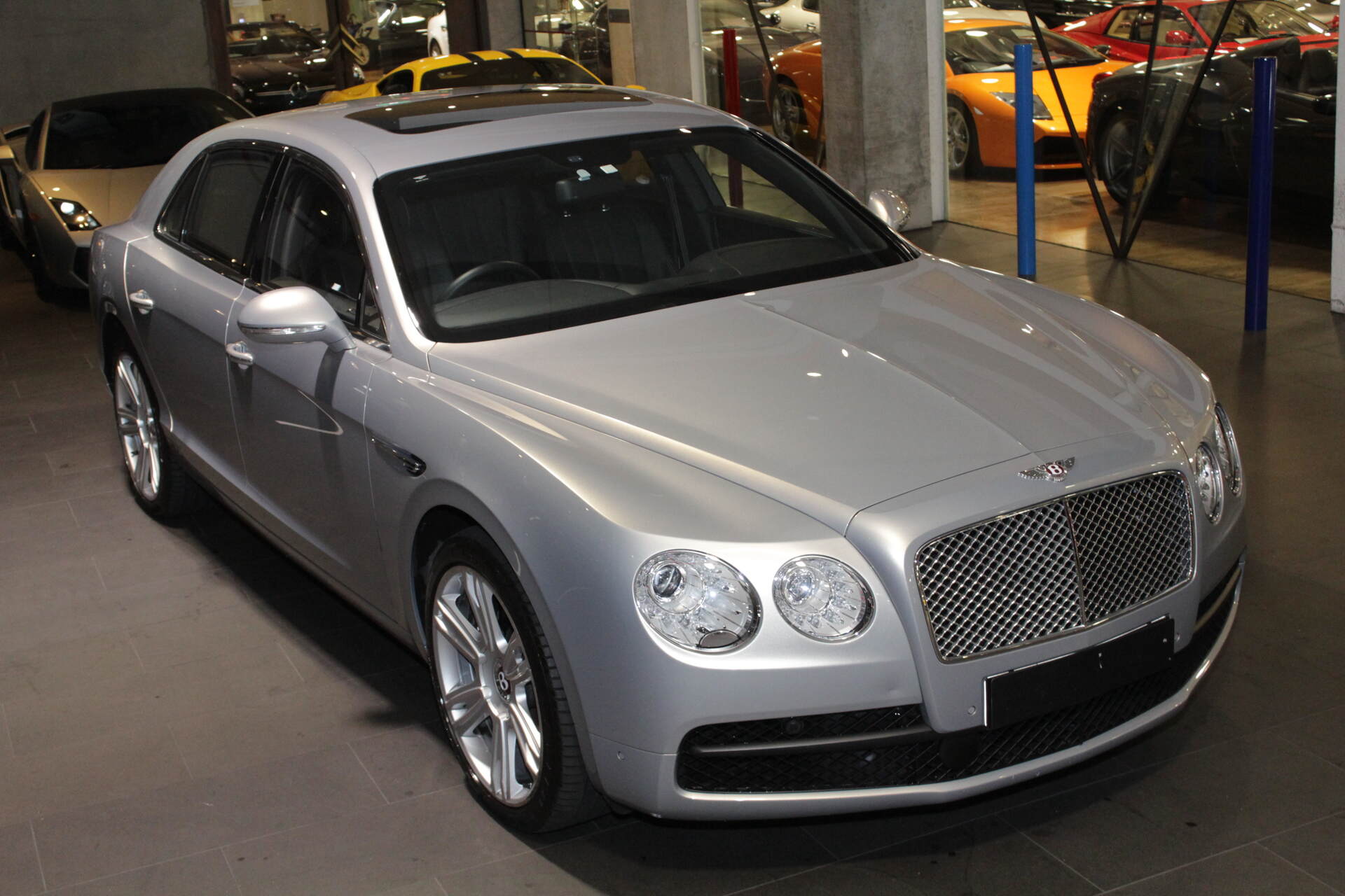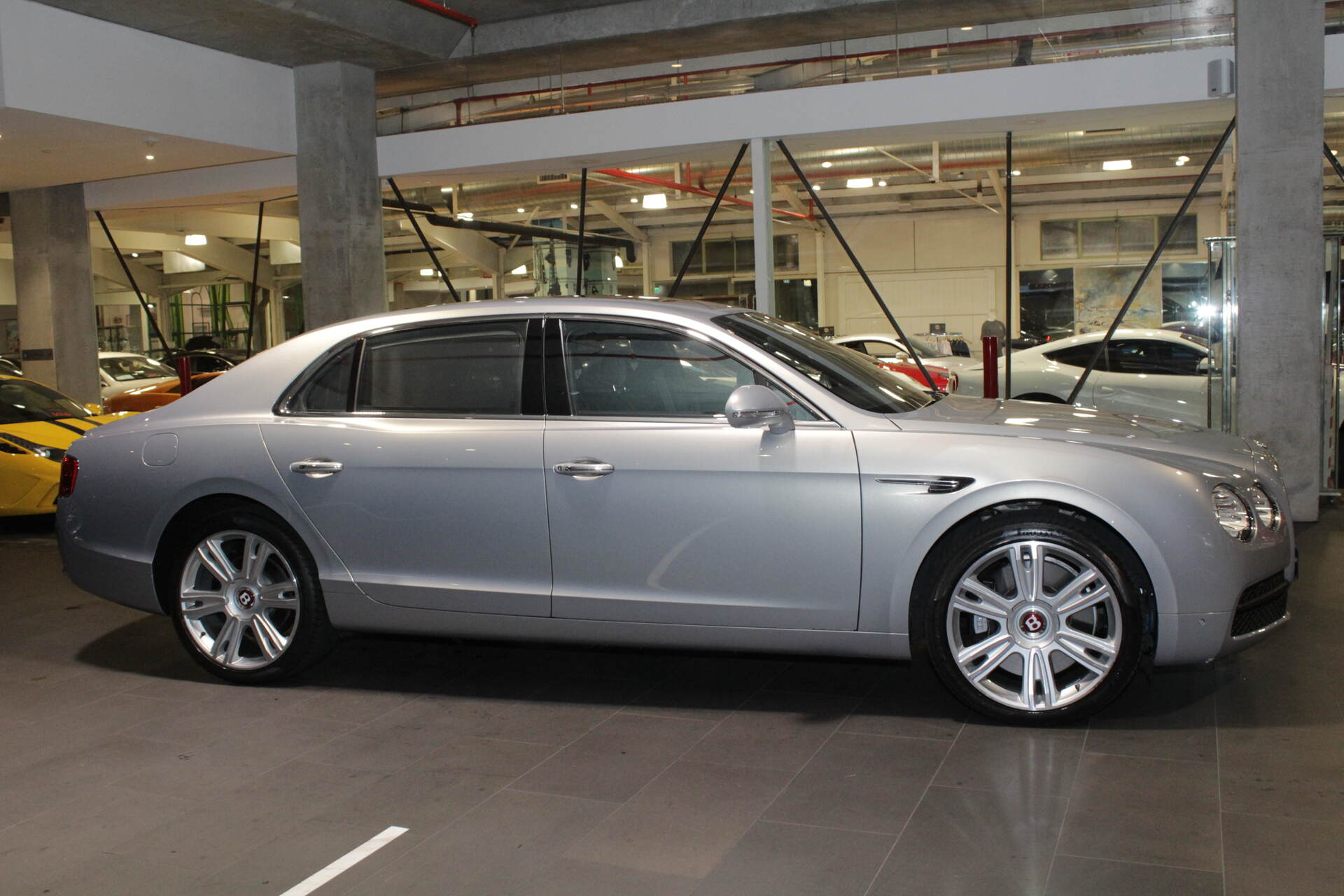 We are proud to offer this stunning and very desirable Australian Delivered MY'15 Bentley Flying Spur Luxury Saloon which is finished in the rare and stunning Extreme Silver Satin Pearl Metallic Coachwork with soft Beluga Napa Leather cabin with Contrasting Stitching and matching carpets. This Flying Spur Saloon is the pinnacle of luxury motoring.