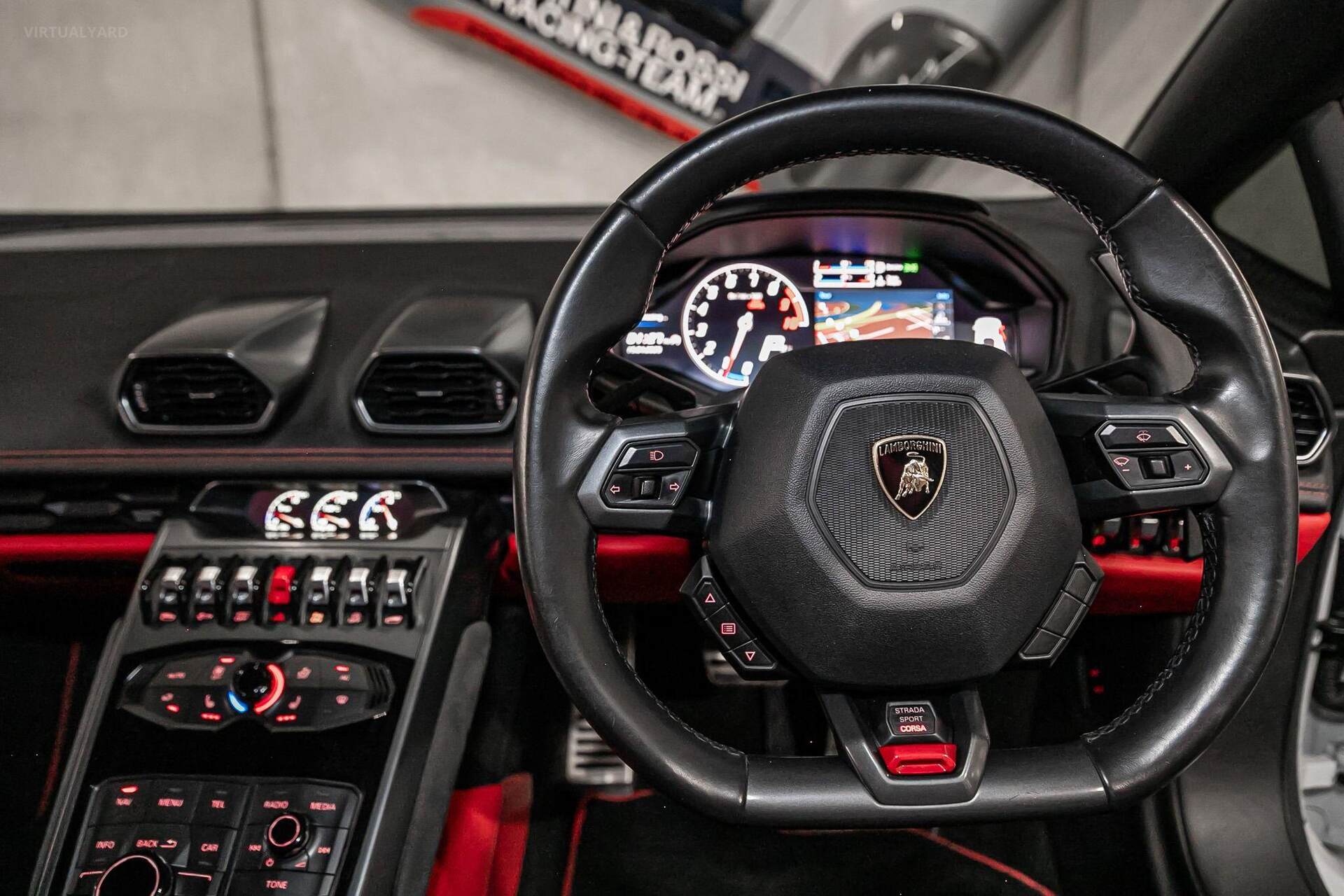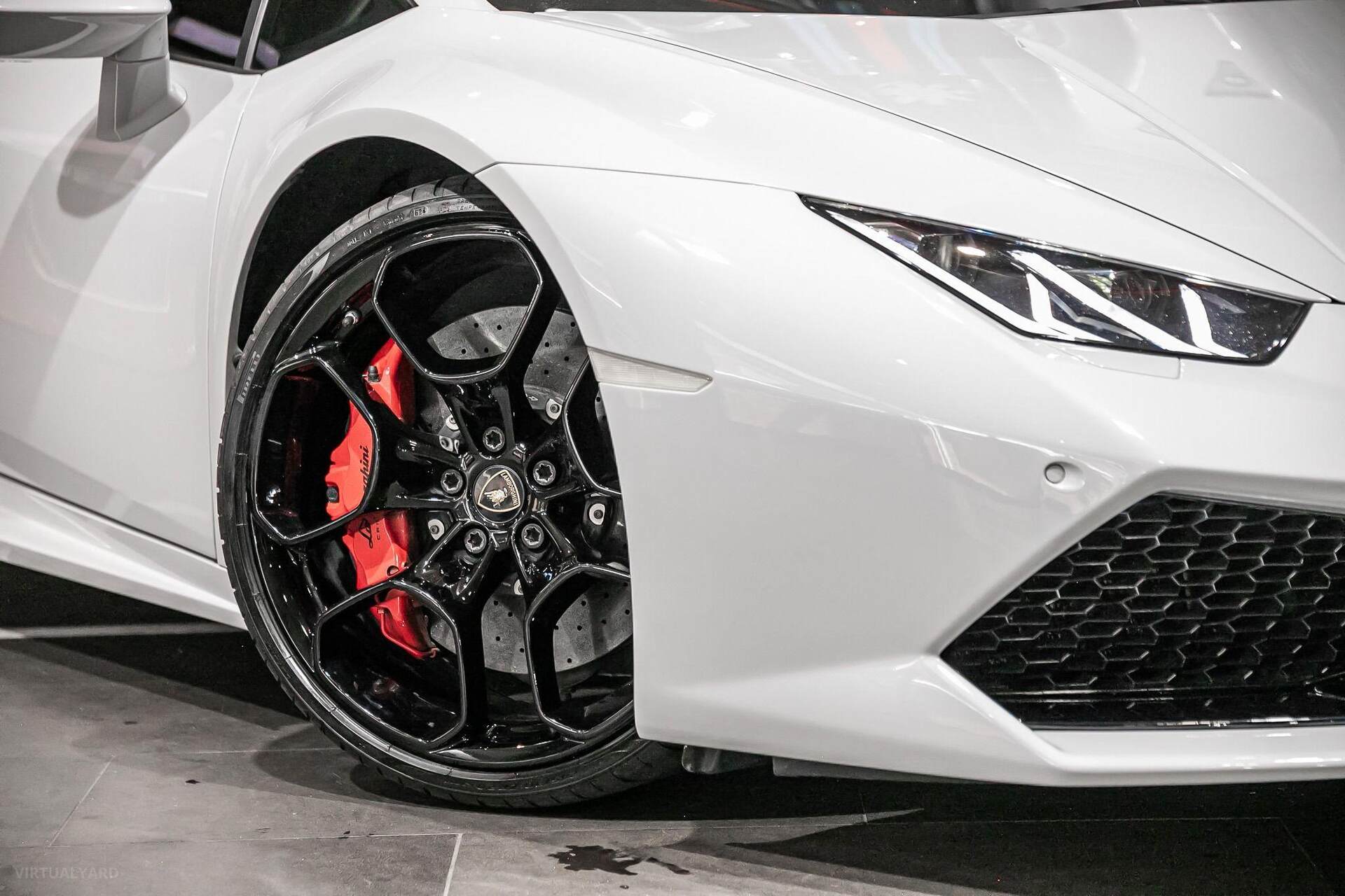 2015 Lamborghini Huracan LP610-4, finished in Bianco Icarus paintwork with a black / Red Leather interior. This example has travelled 36,300 kms