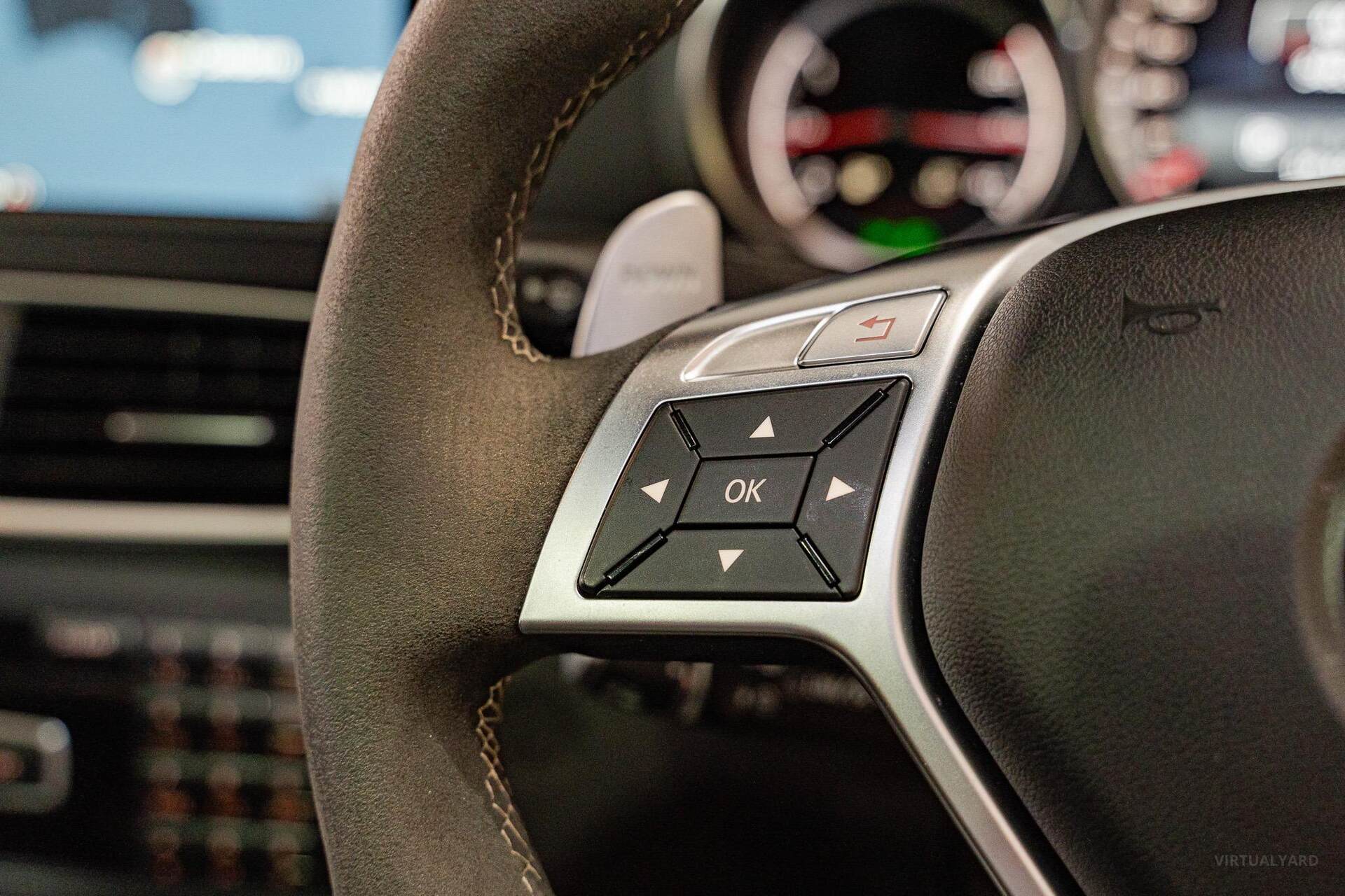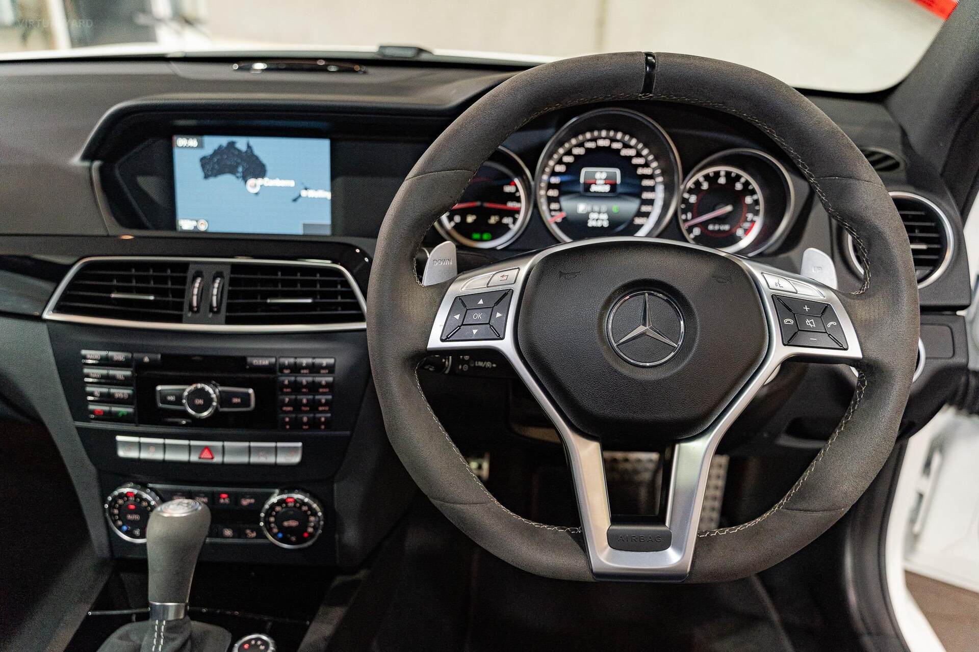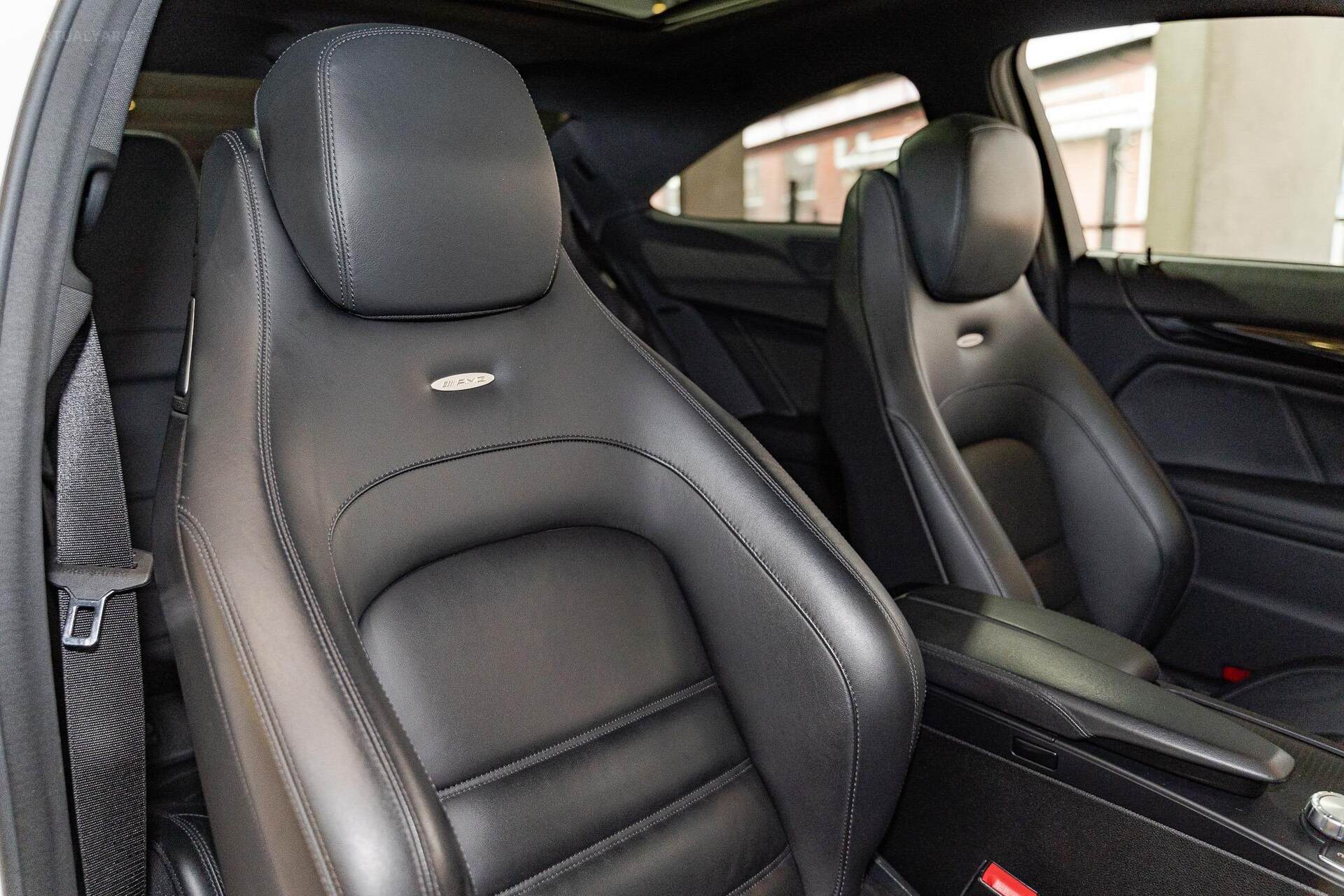 Standard features encompass advanced elements such as Map Pilot navigation, a COMAND online multi-media system with a 10GB music register, Bluetooth with audio streaming, Harmon Kardon Logic7 Dolby surround sound, Nappa leather upholstery, 'Thermotronic' climate control, and an AMG instrument cluster with a race-timer. The car rides on 19-inch AMG light-alloy wheels.