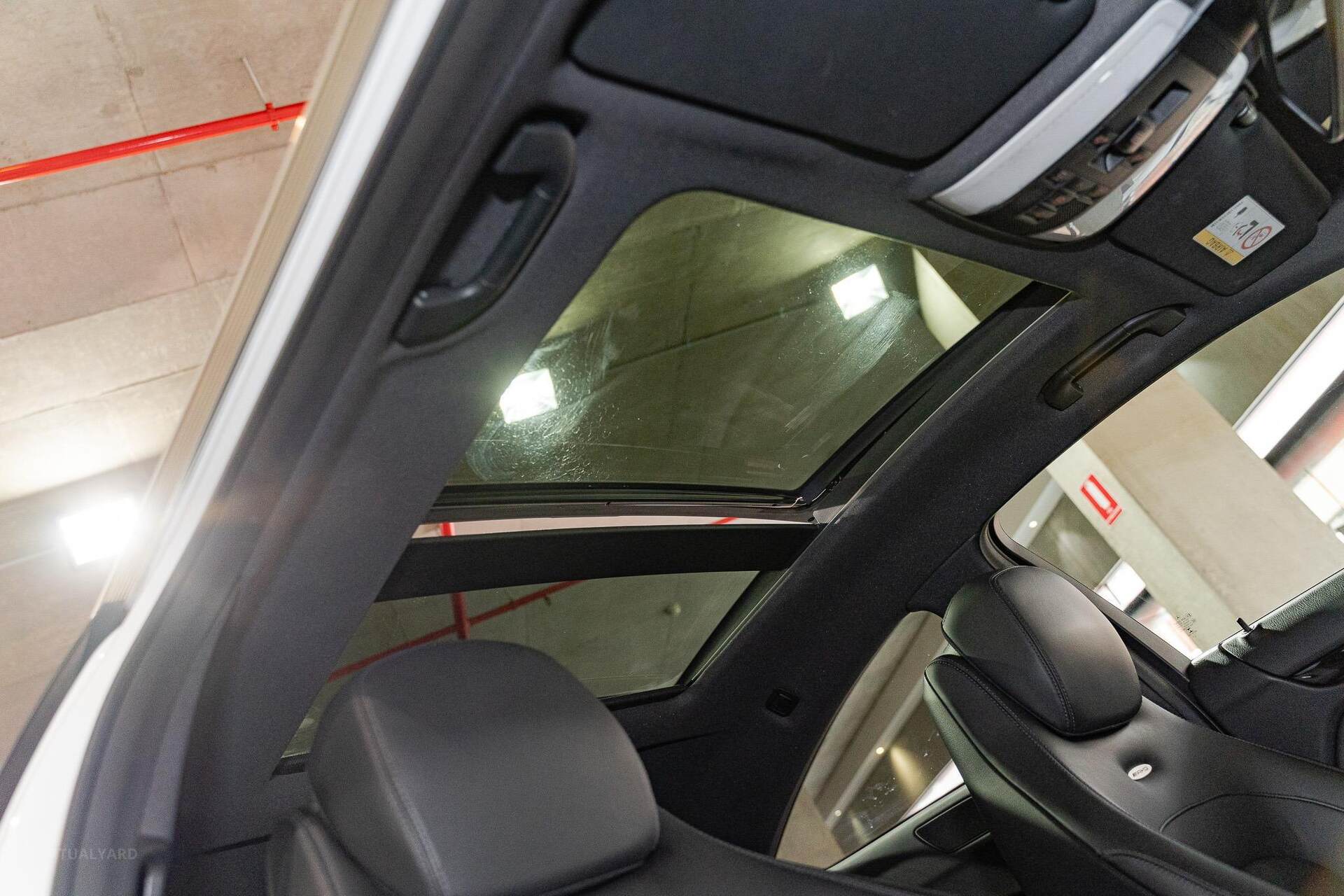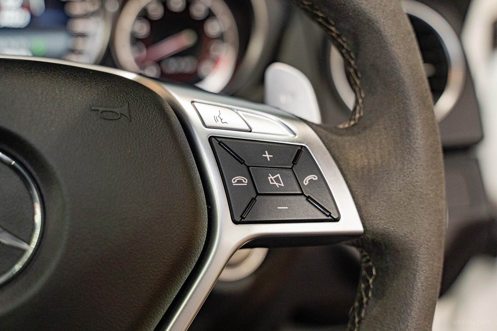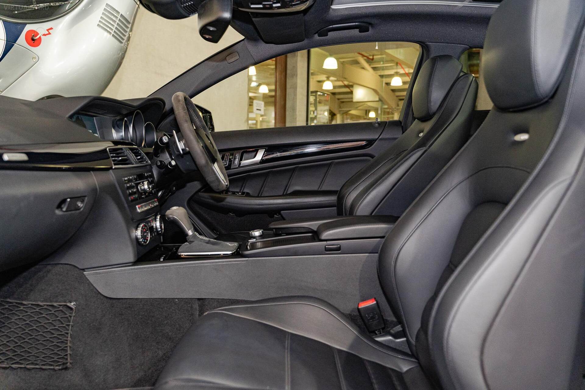 Standard features encompass advanced elements such as Map Pilot navigation, a COMAND online multi-media system with a 10GB music register, Bluetooth with audio streaming, Harmon Kardon Logic7 Dolby surround sound, Nappa leather upholstery, 'Thermotronic' climate control, and an AMG instrument cluster with a race-timer. The car rides on 19-inch AMG light-alloy wheels.