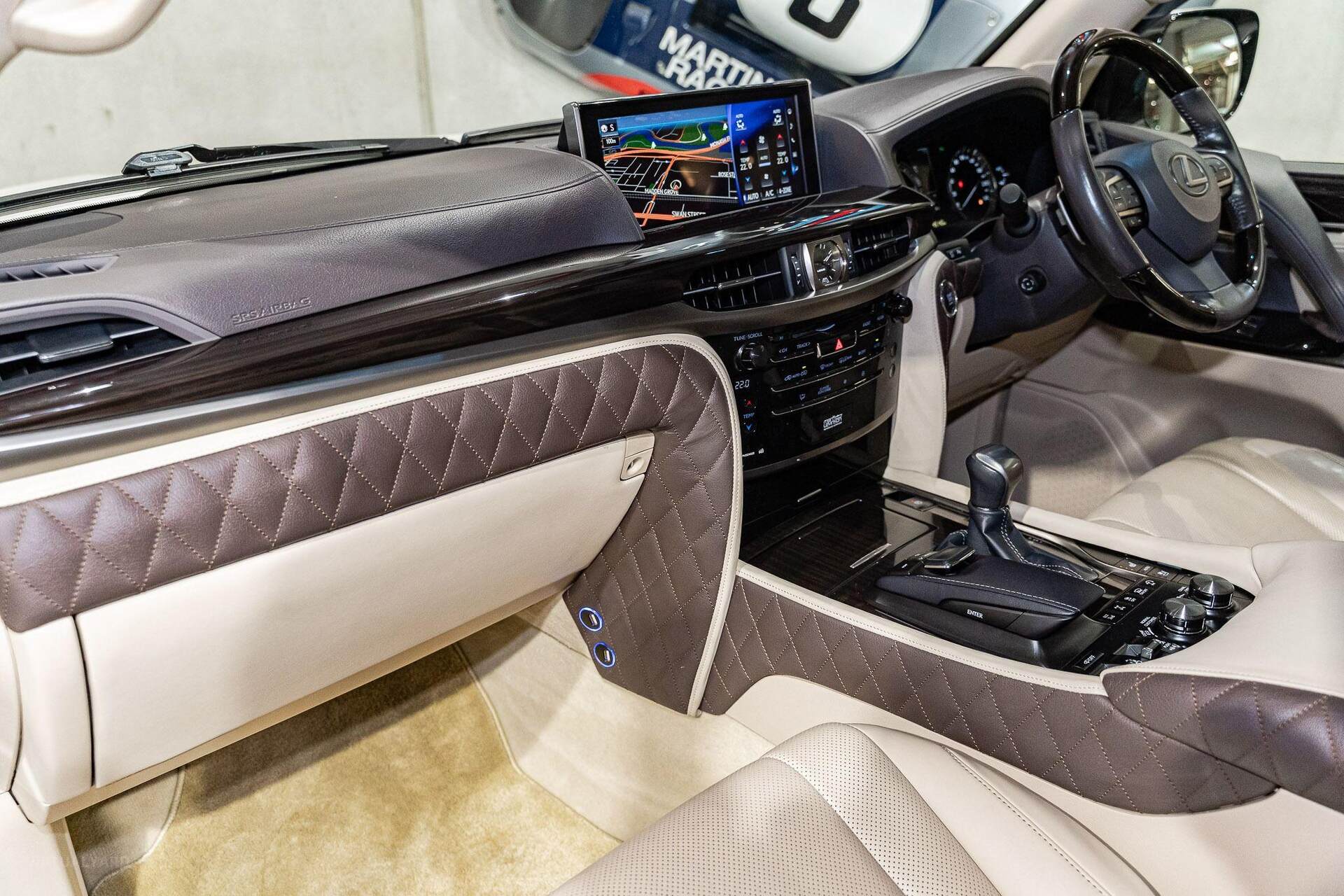 - Two tone leather interior with diamond stitched leather trim