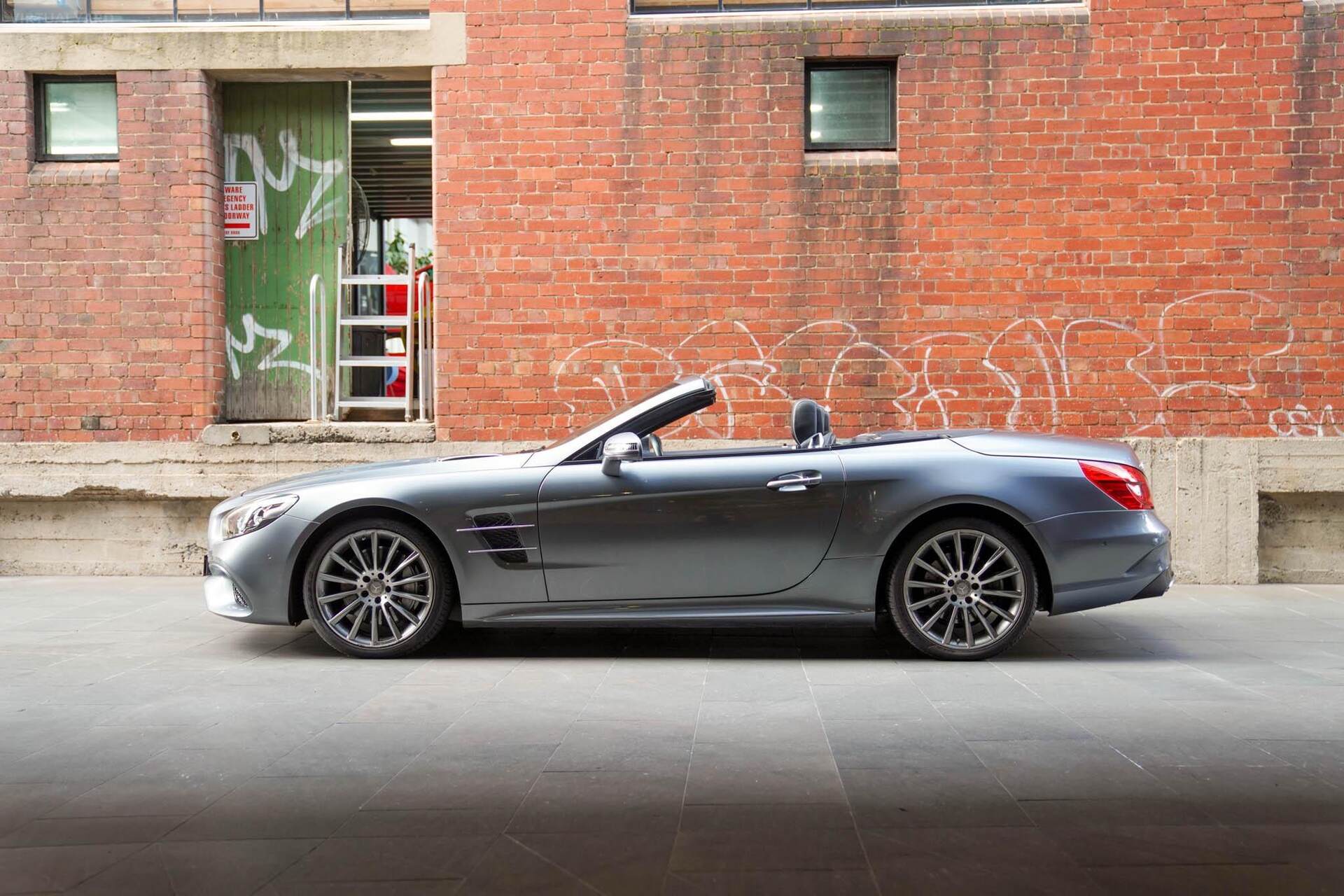 2016 Mercedes-Benz SL400, finished in Beautiful Metallic Grey paintwork with Black leather interior. This example has travelled 57811kms.