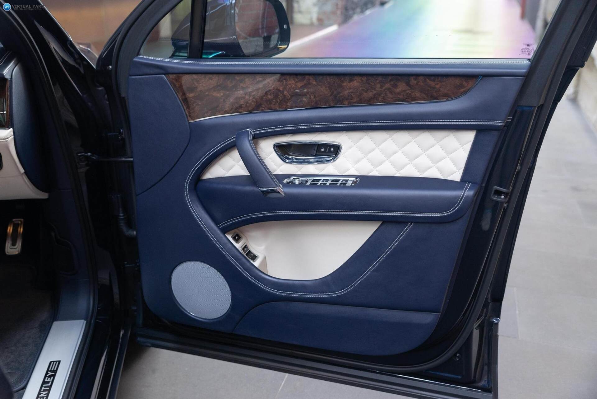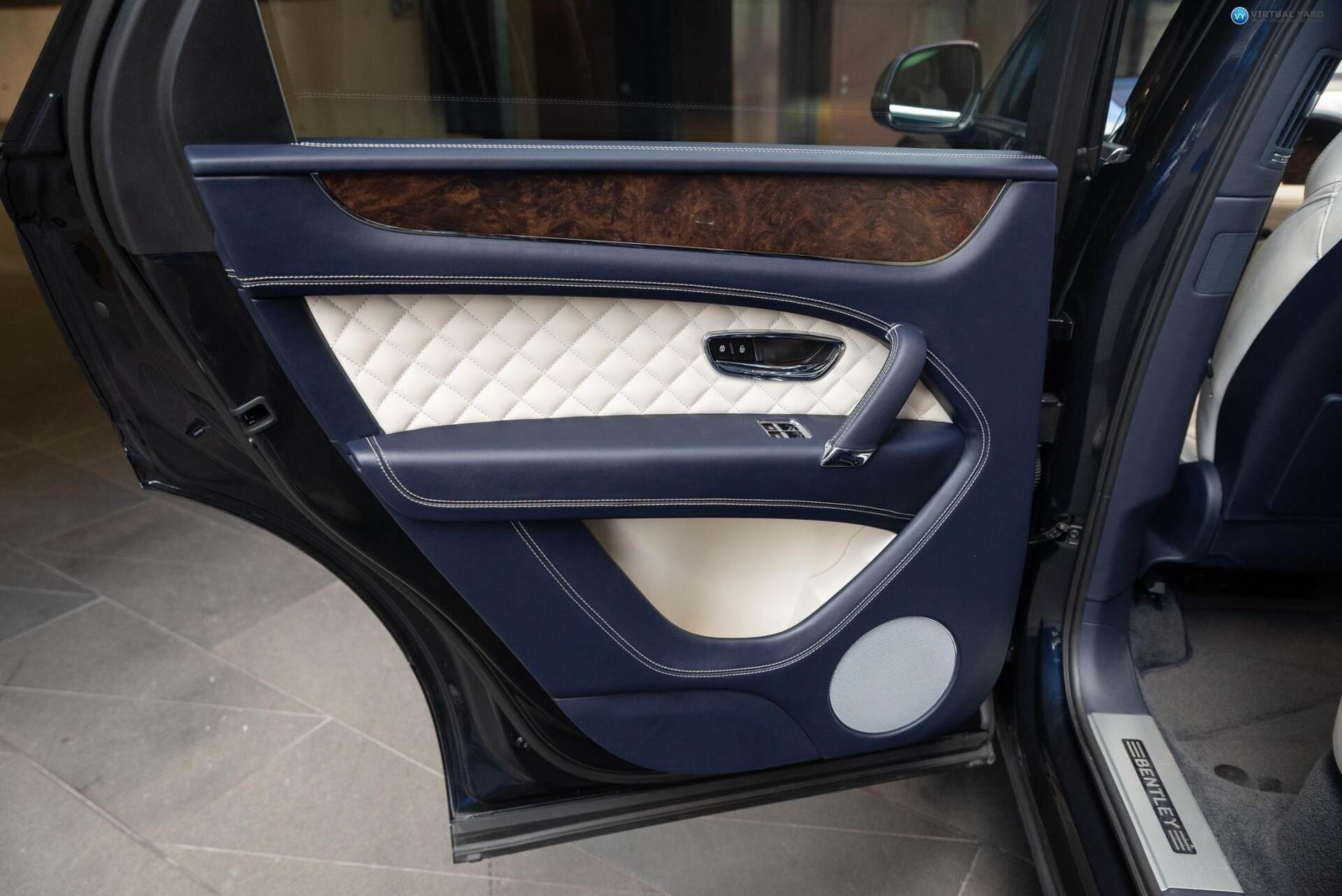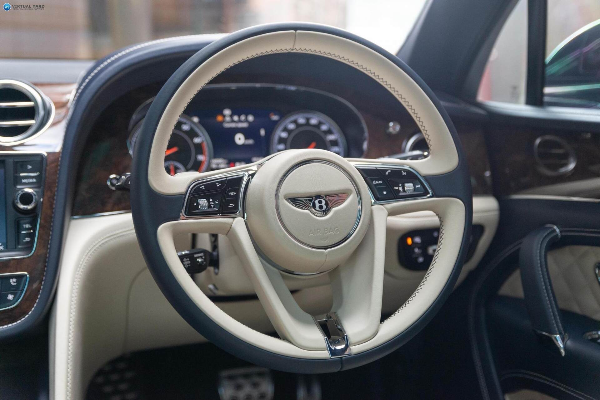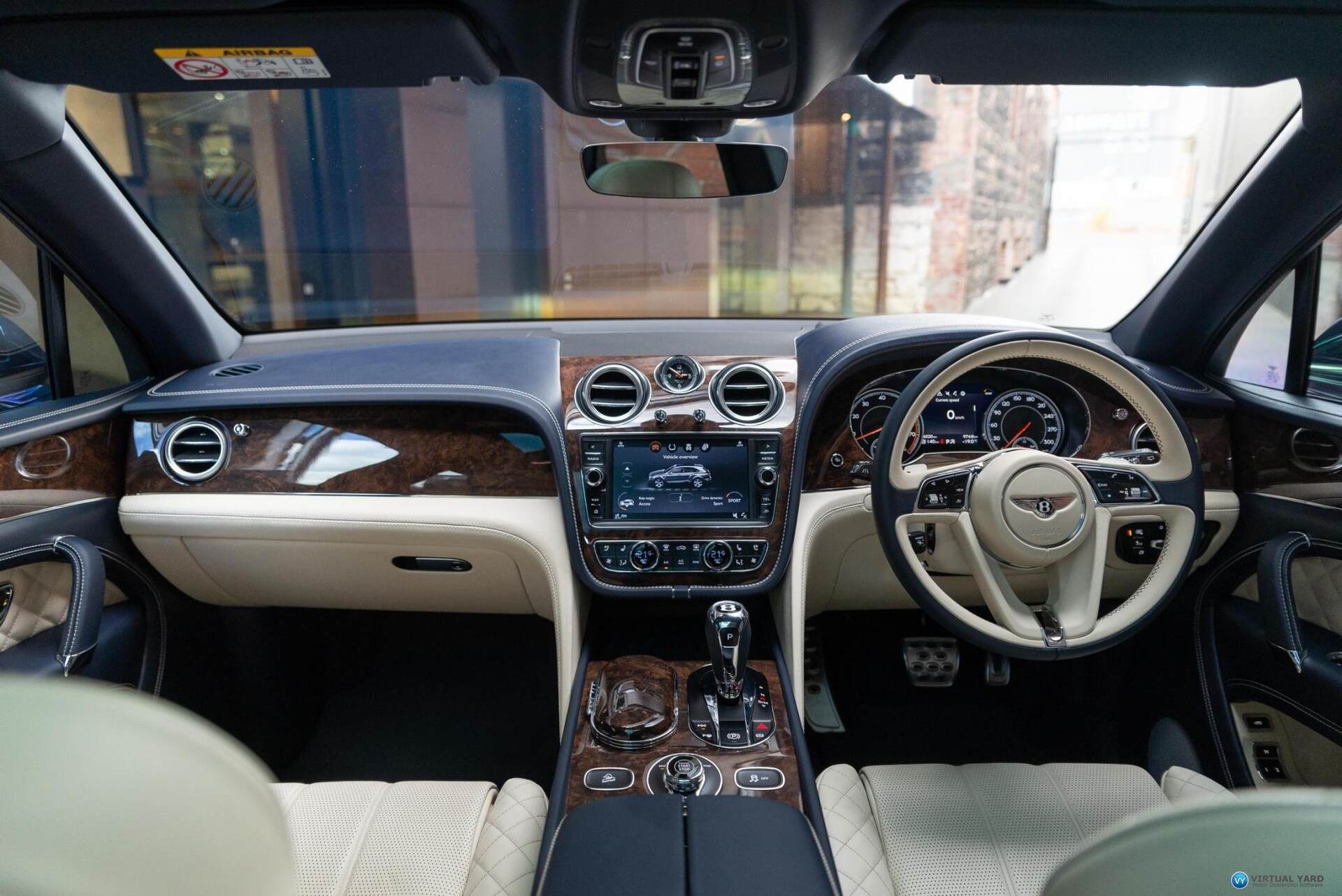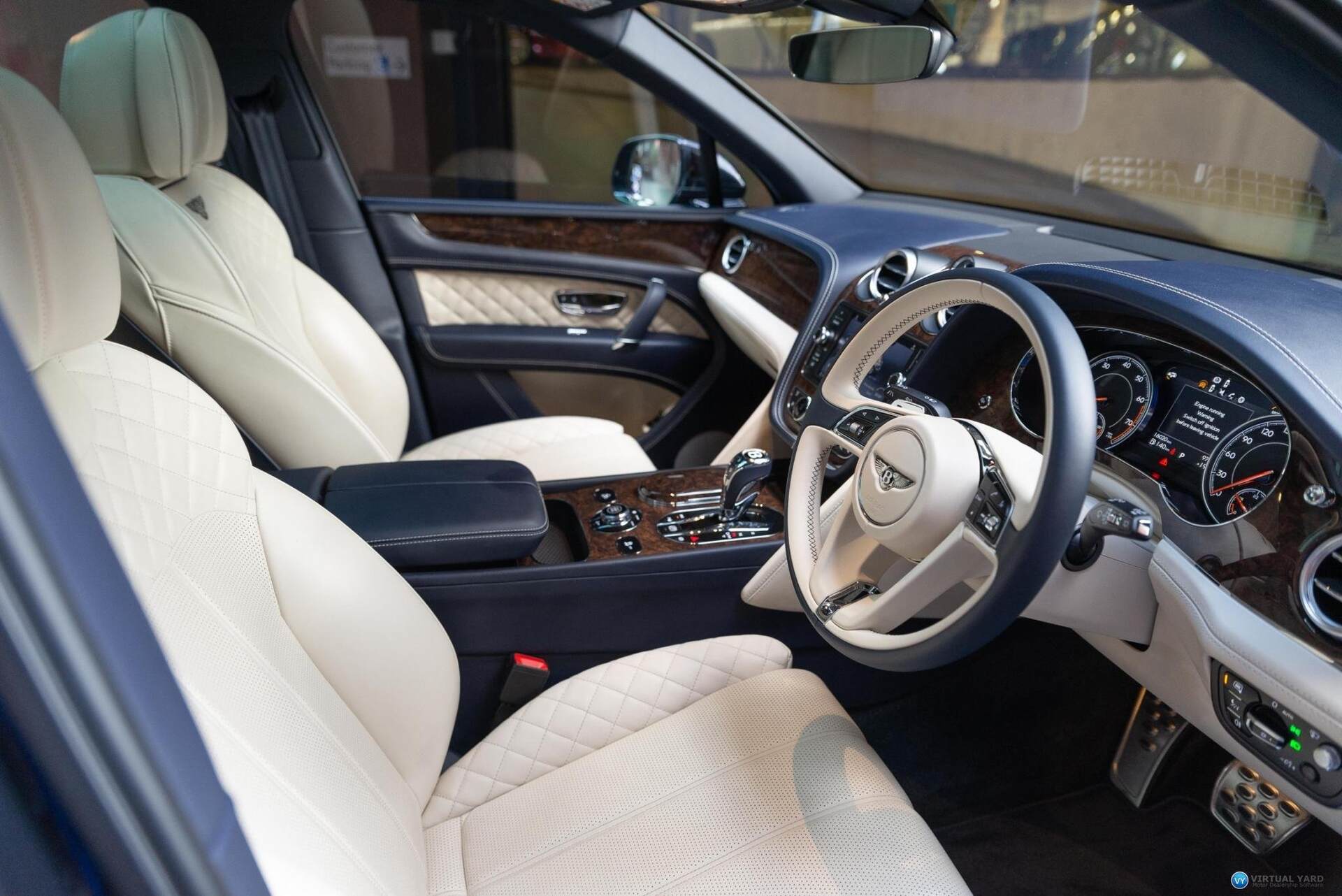 2017 Bentley Bentayga, finished in Dark Sapphire paintwork with beige leather interior. This example has travelled 15,723kms.