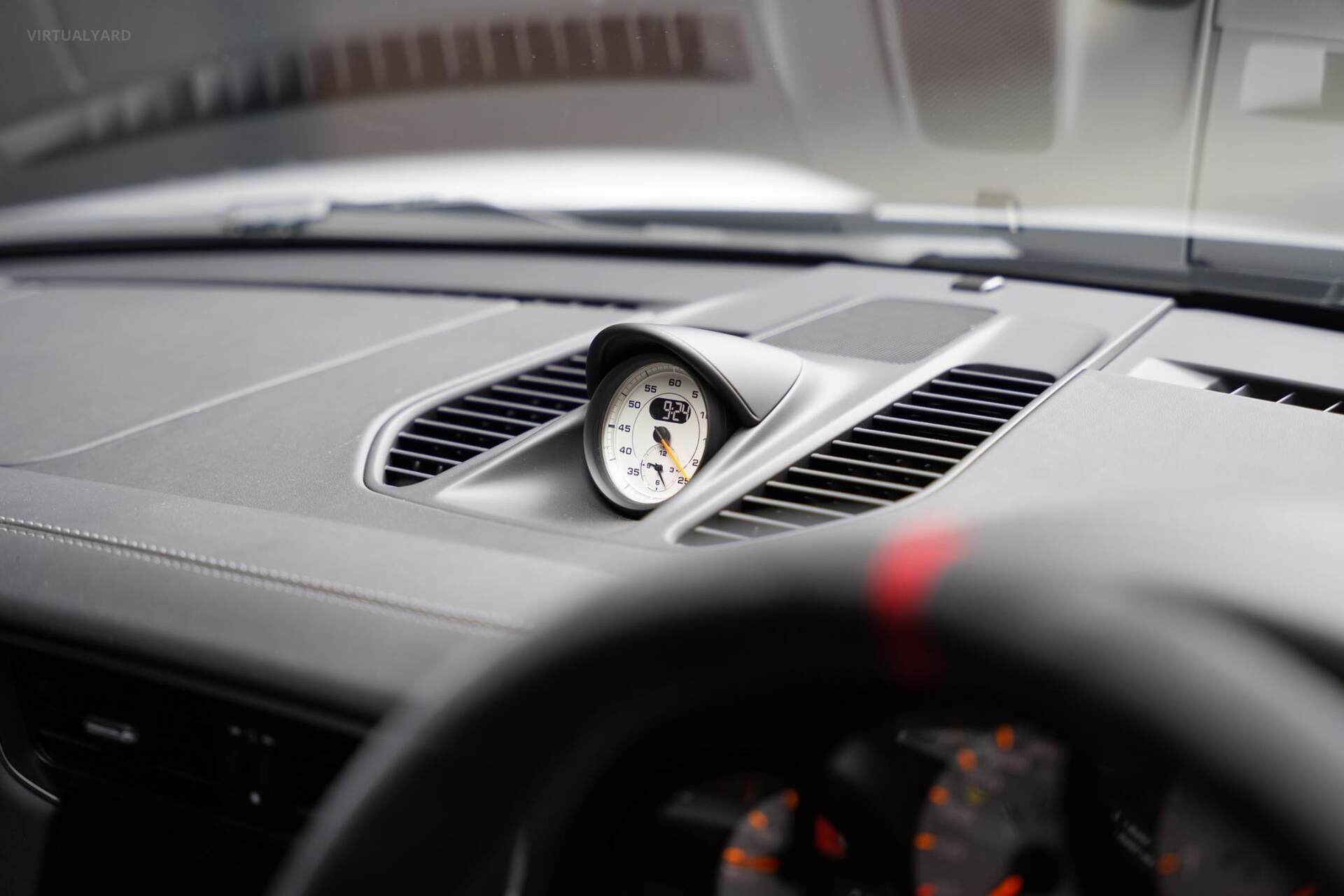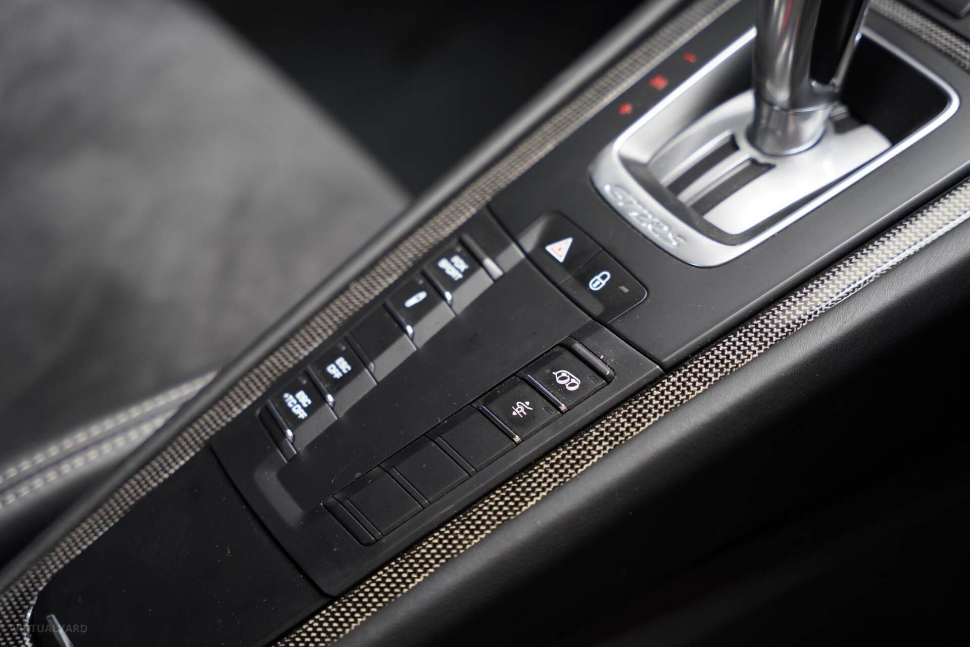 - Storage compartment lid in Alcantara with 'Porsche' logo.