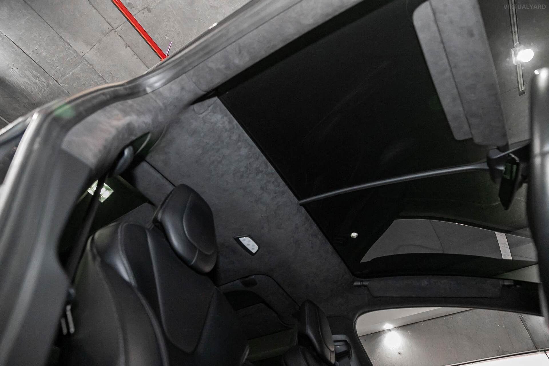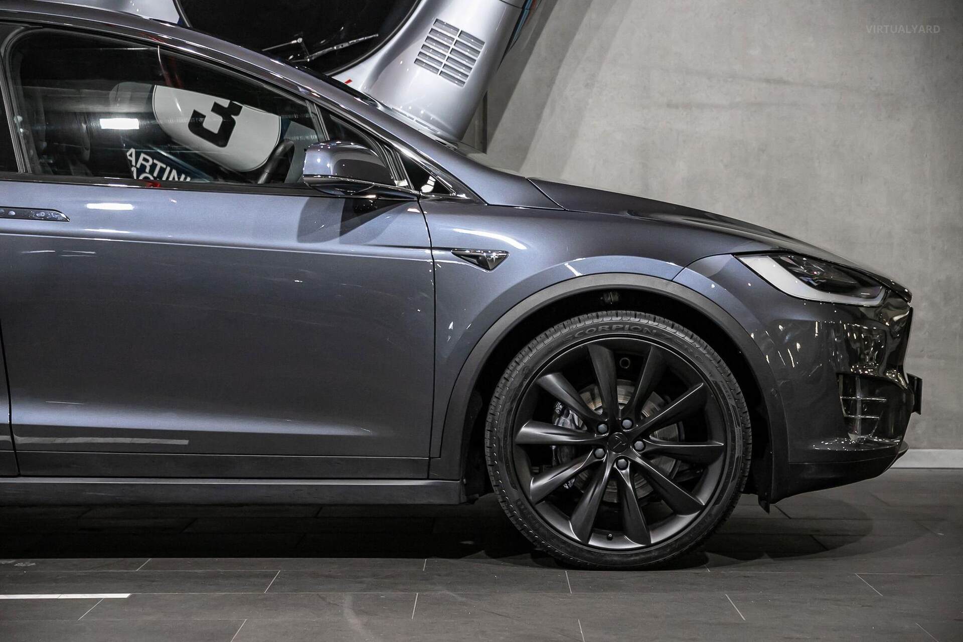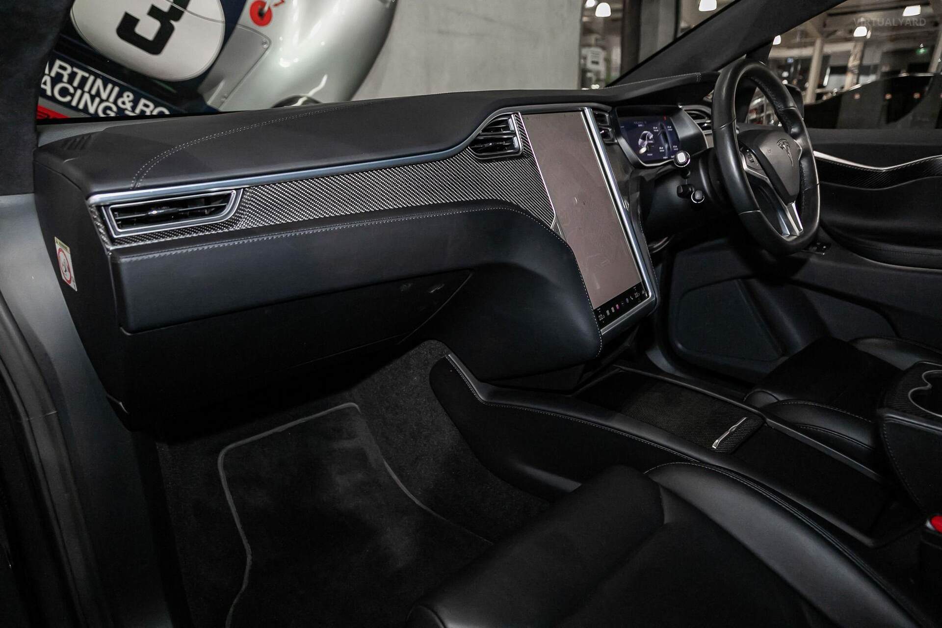 With a minimalist, sleek interior, that features a sloping glass roof and propelled by dual electric motors, this Model X reaches 100kph in just 4.9 seconds. Other features include: