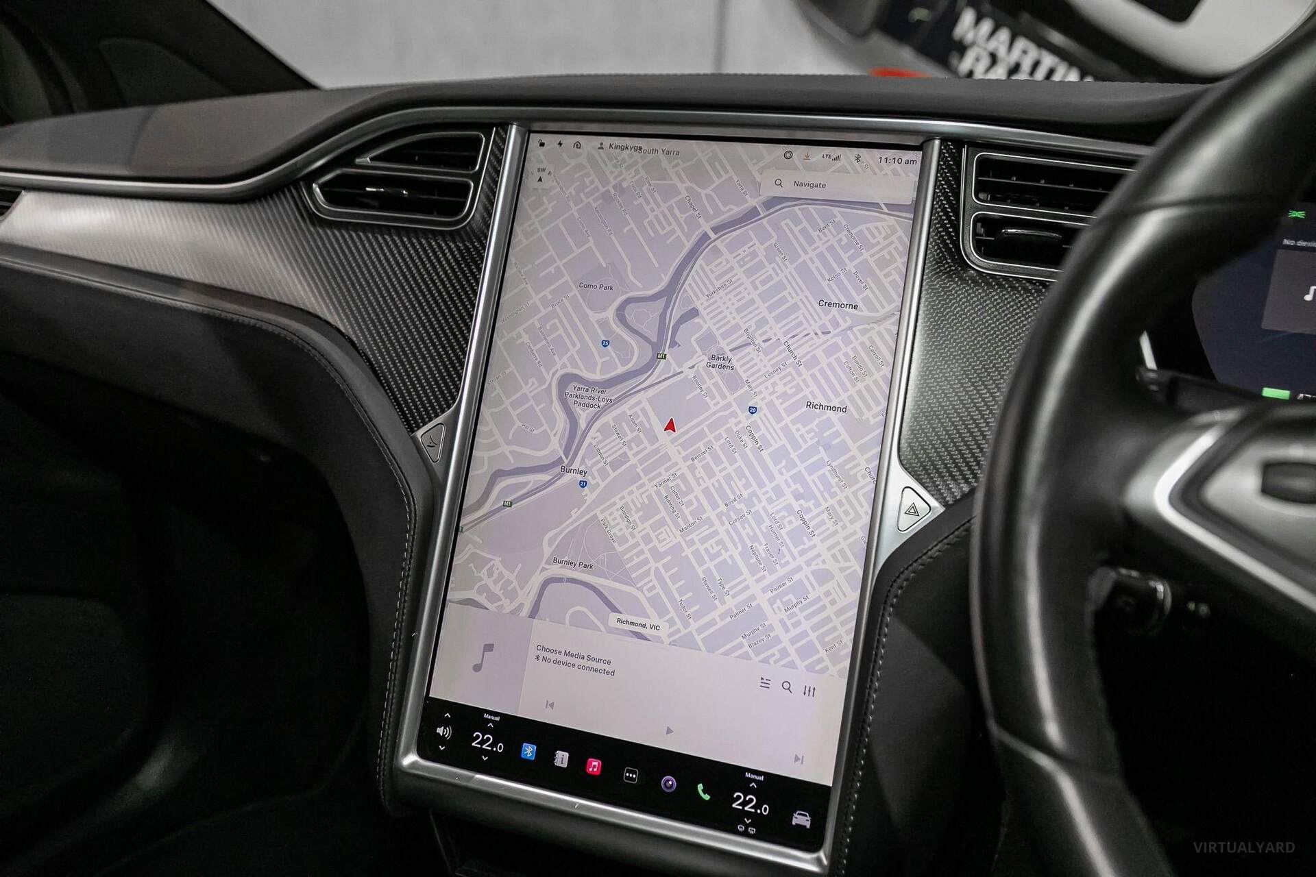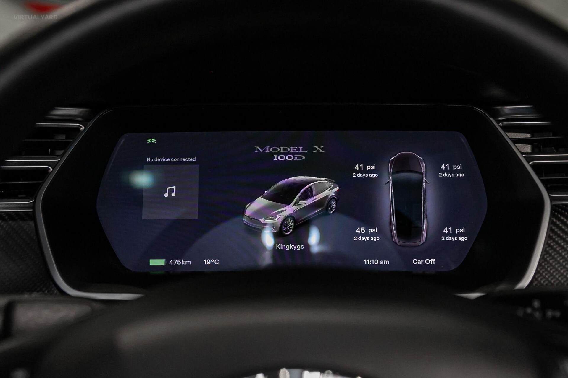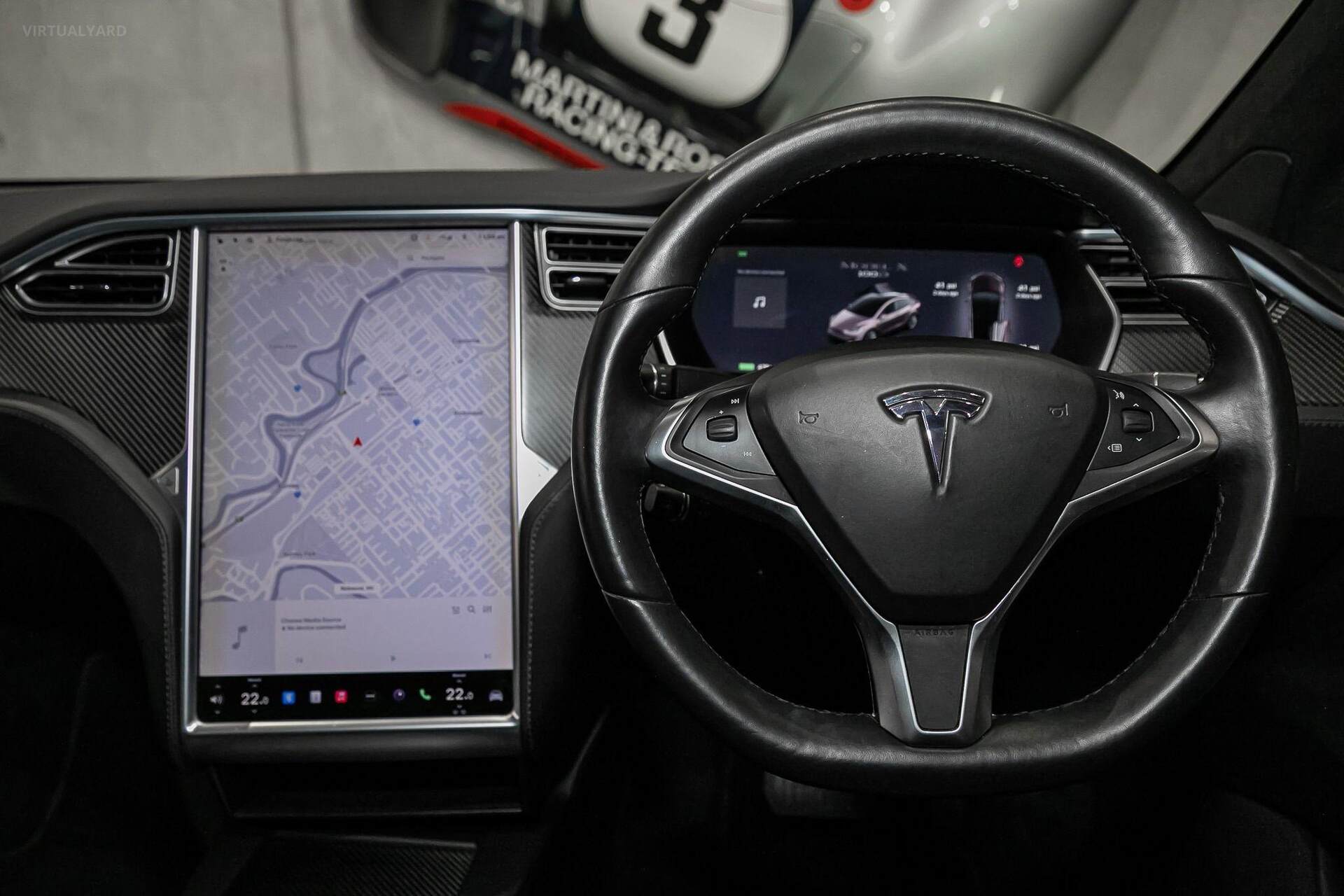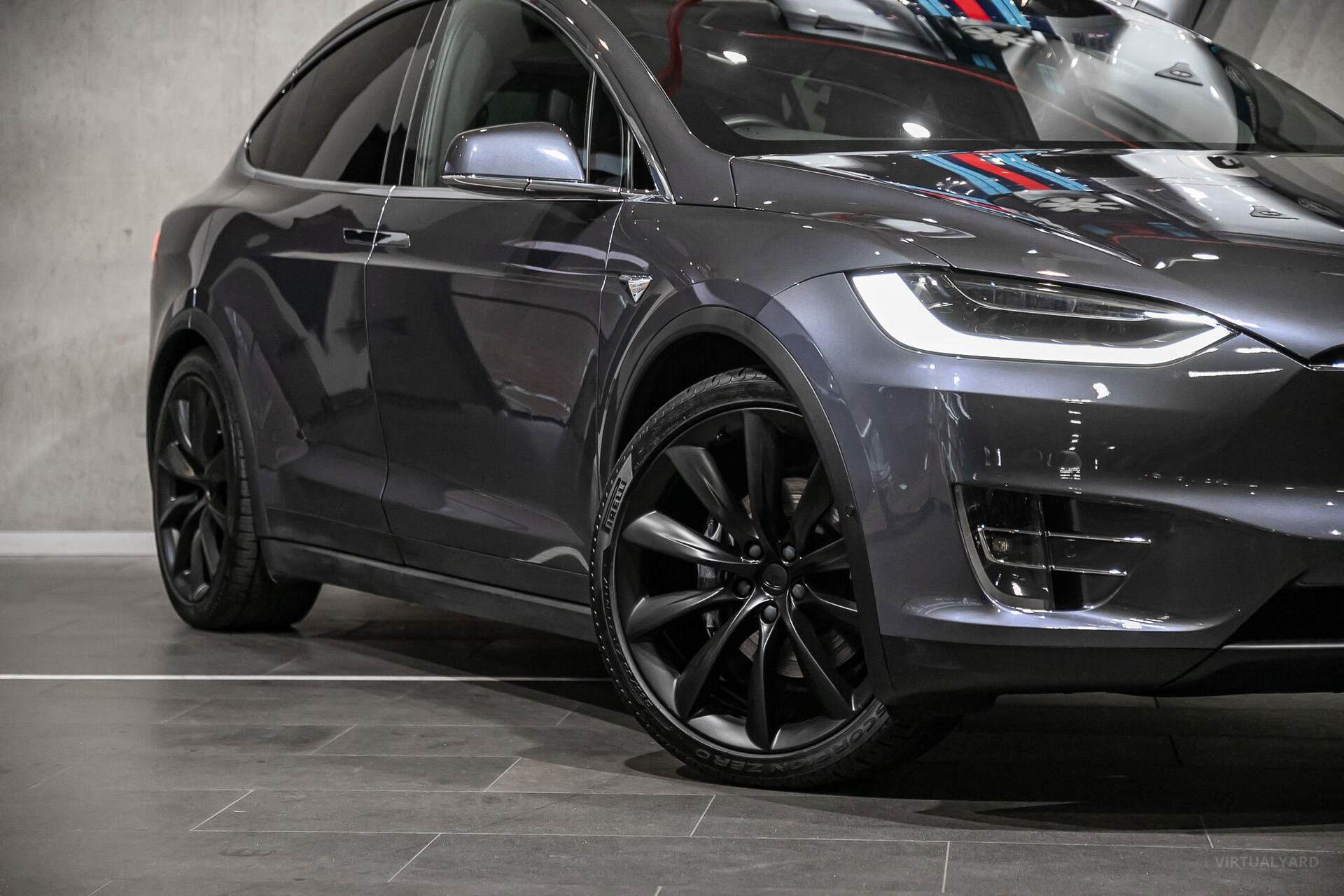 With a minimalist, sleek interior, that features a sloping glass roof and propelled by dual electric motors, this Model X reaches 100kph in just 4.9 seconds. Other features include: