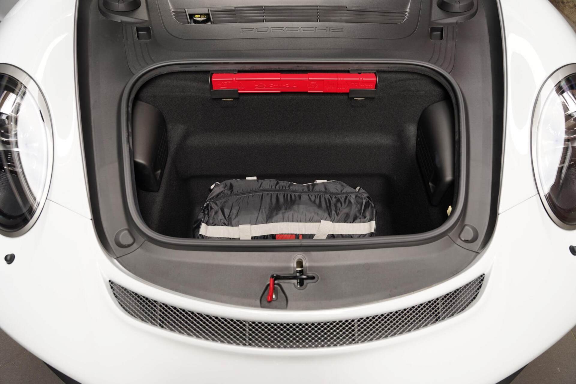 - Lid of storage bin with Porsche crest.