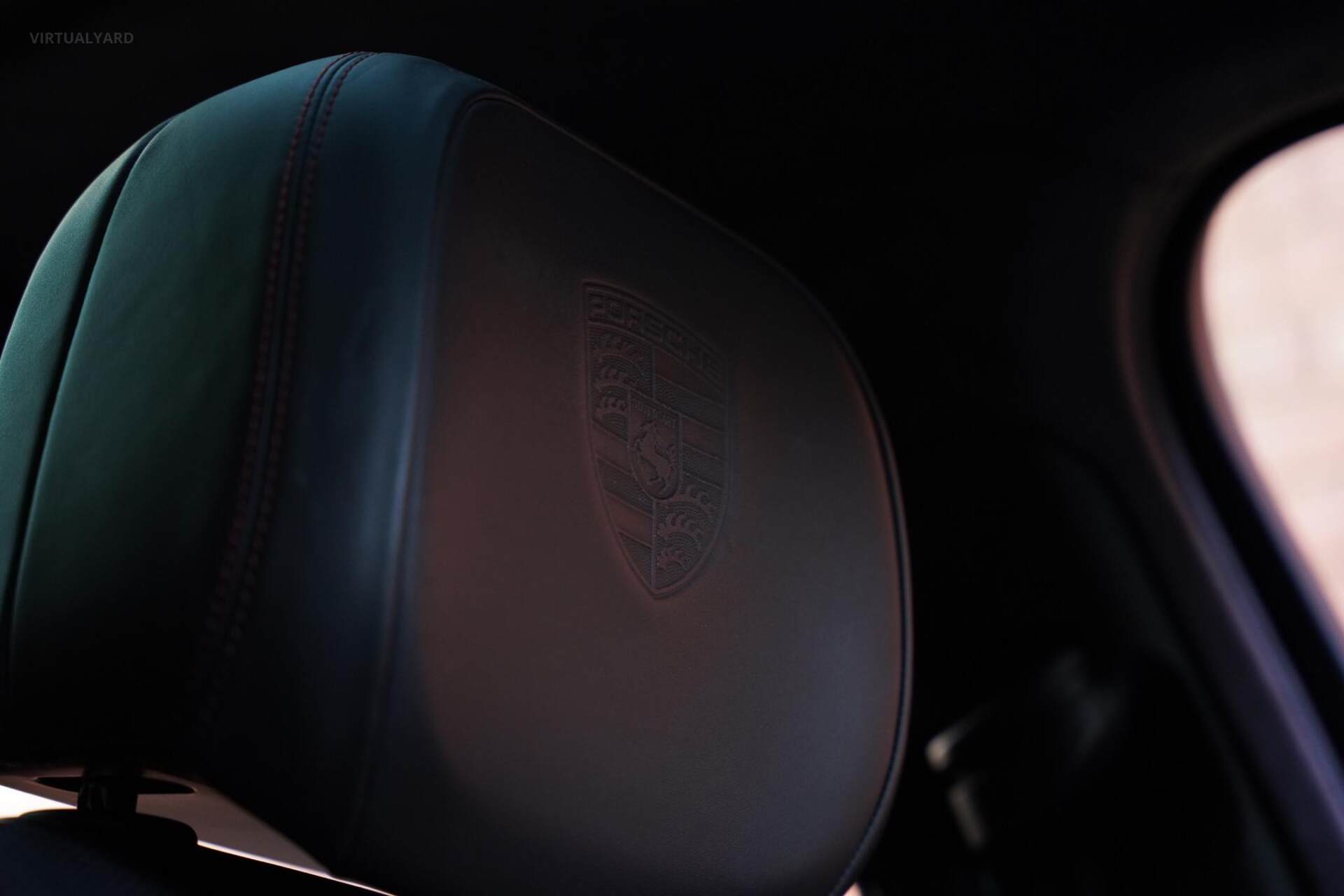 - Porsche crest embedded on headrests.