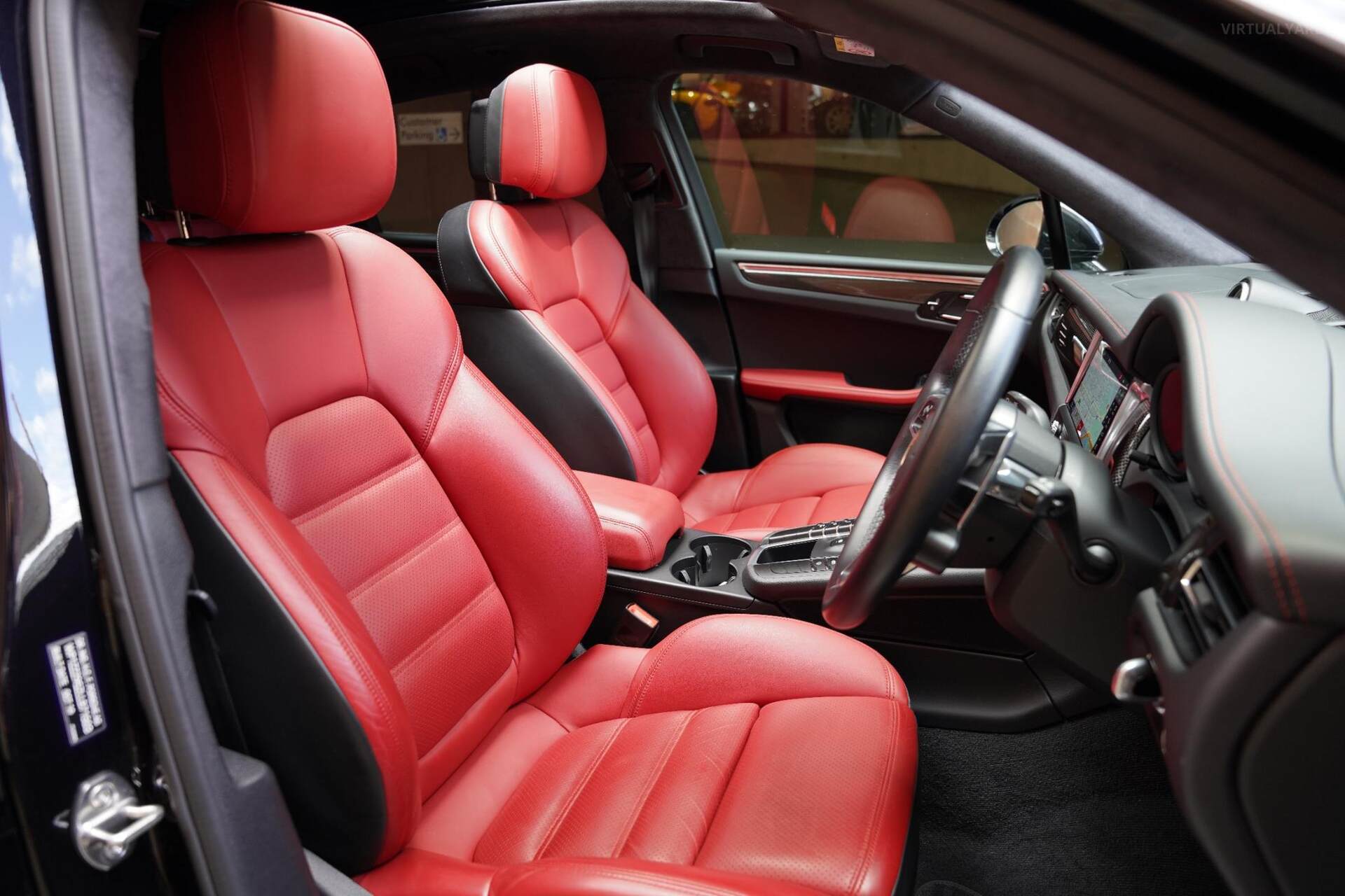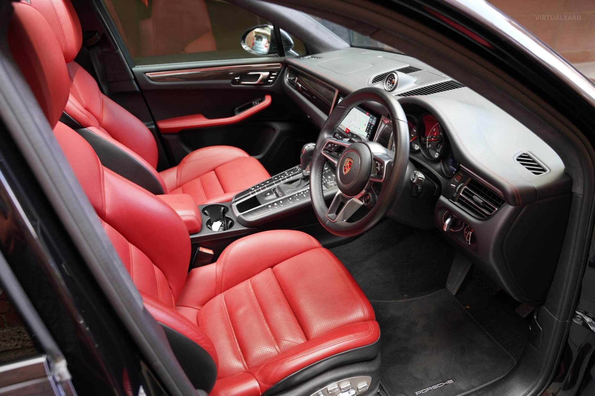 2020 Porsche Macan Turbo, finished in a Jet Black paintwork with a Red leather interior. This example has travelled 19,265kms.