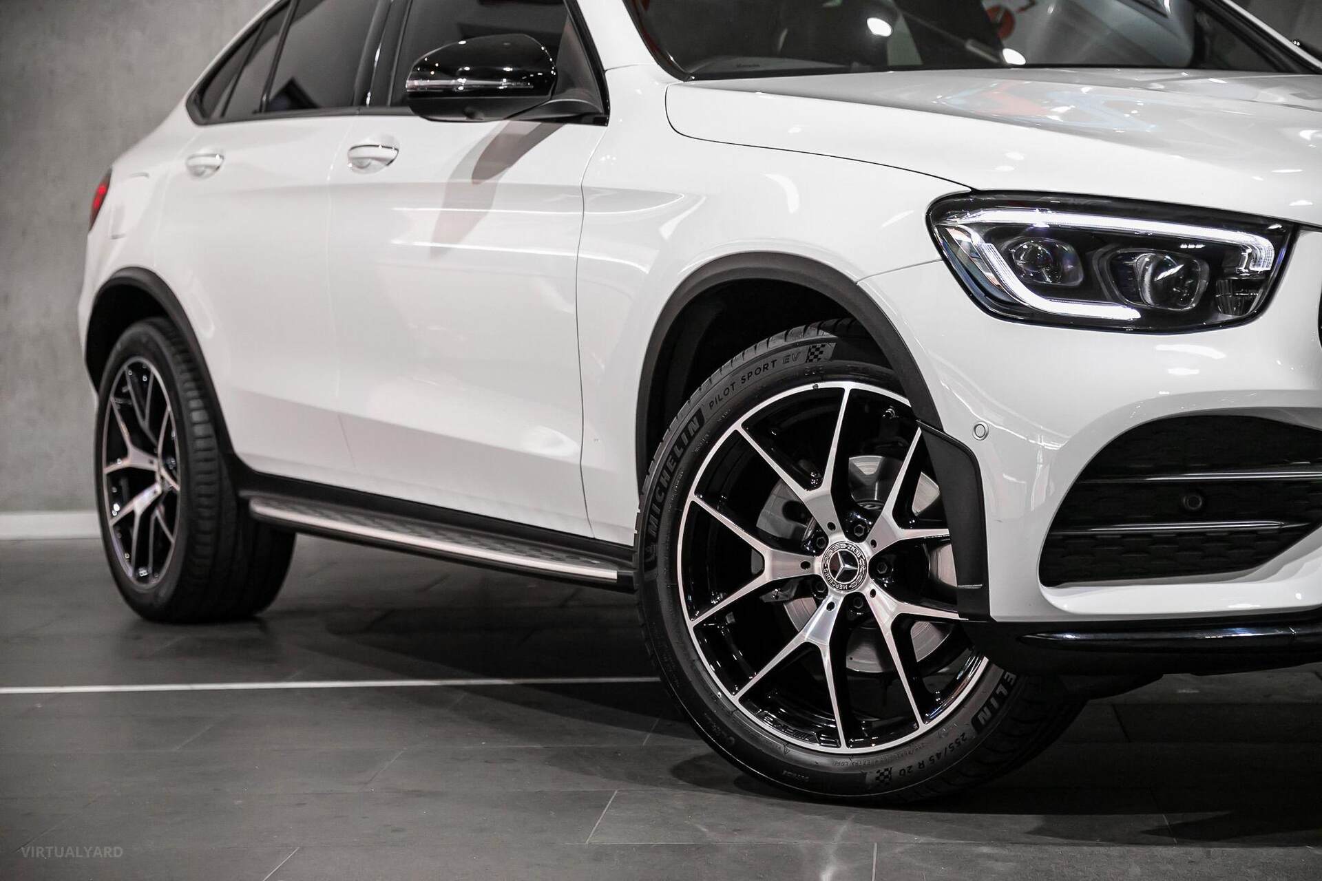 Introducing, this immaculate 2021 Mercedes-Benz GLC300 4MATIC, finished in Polar White with a black leather interior. This offering from Mercedes is the perfect blend of SUV practicality and sleek coupe body lines.