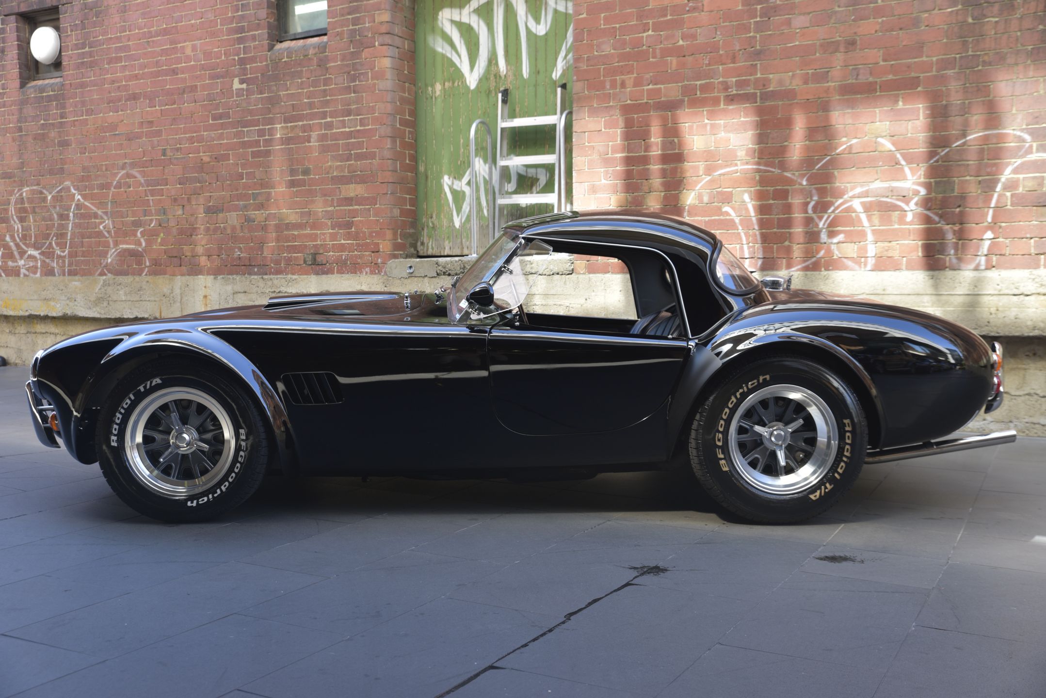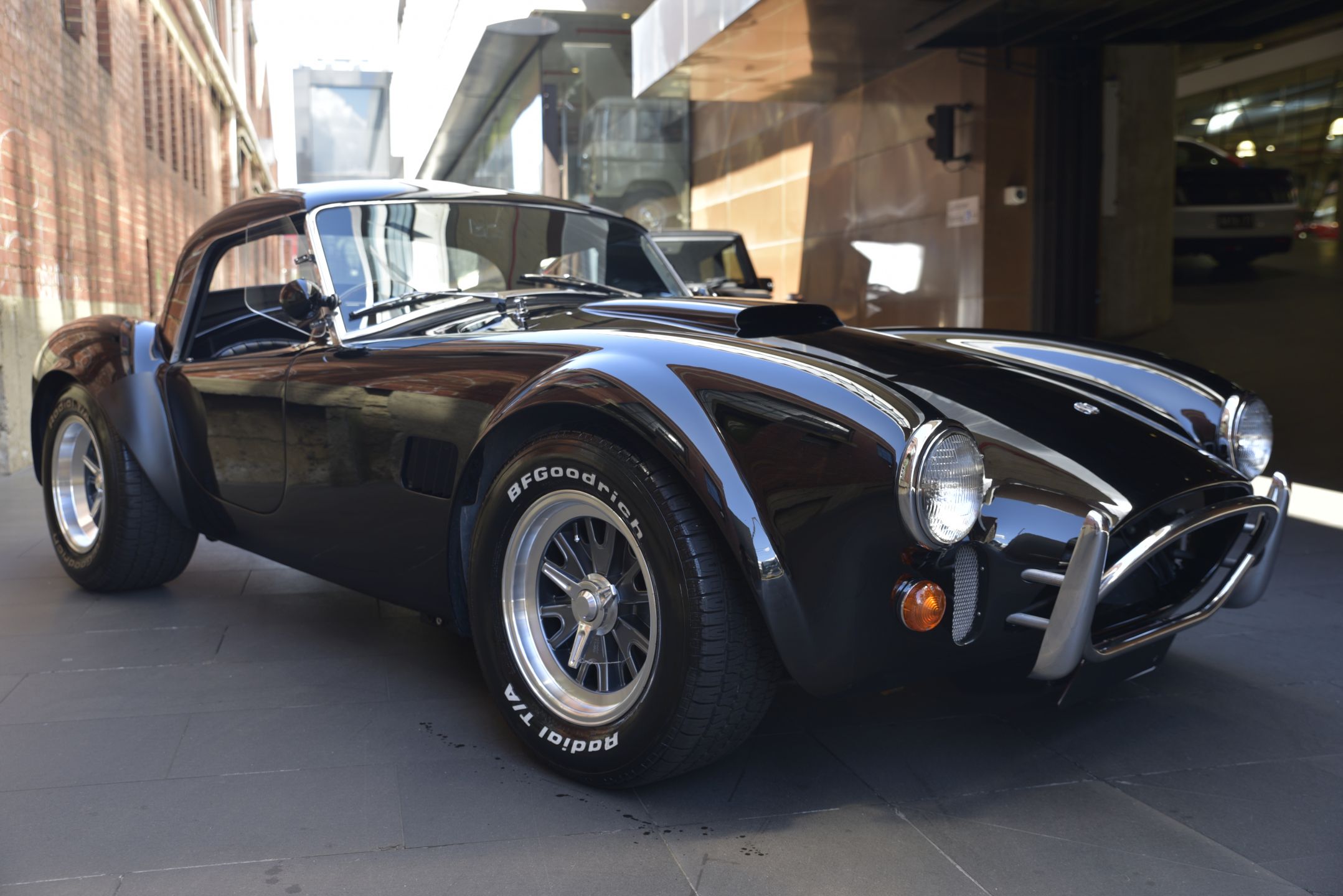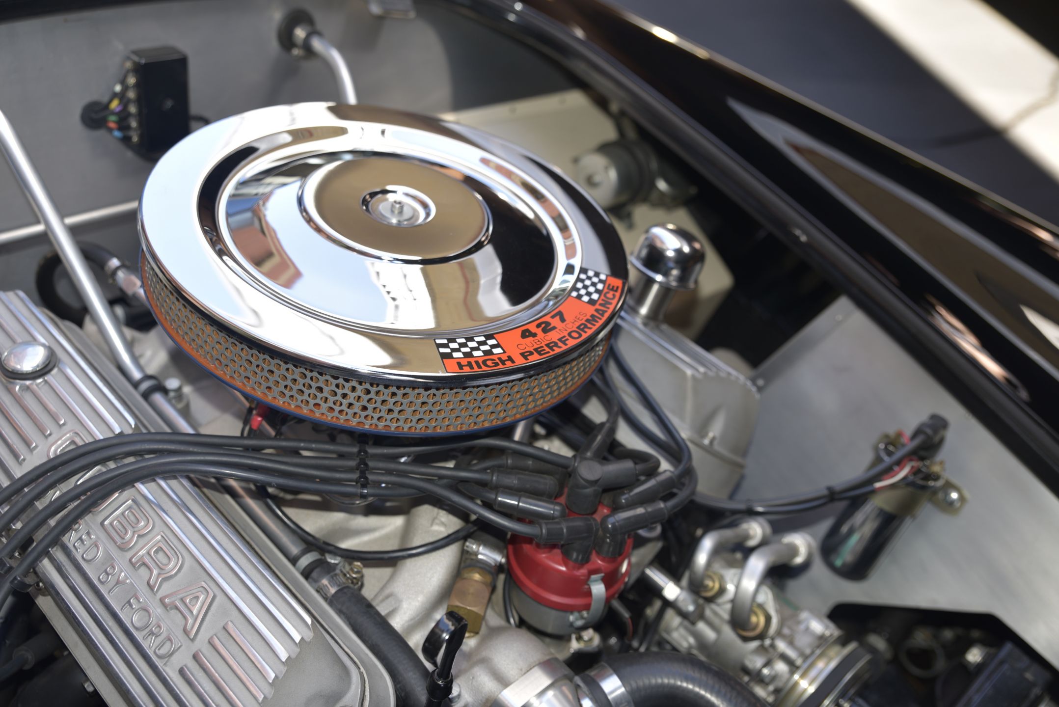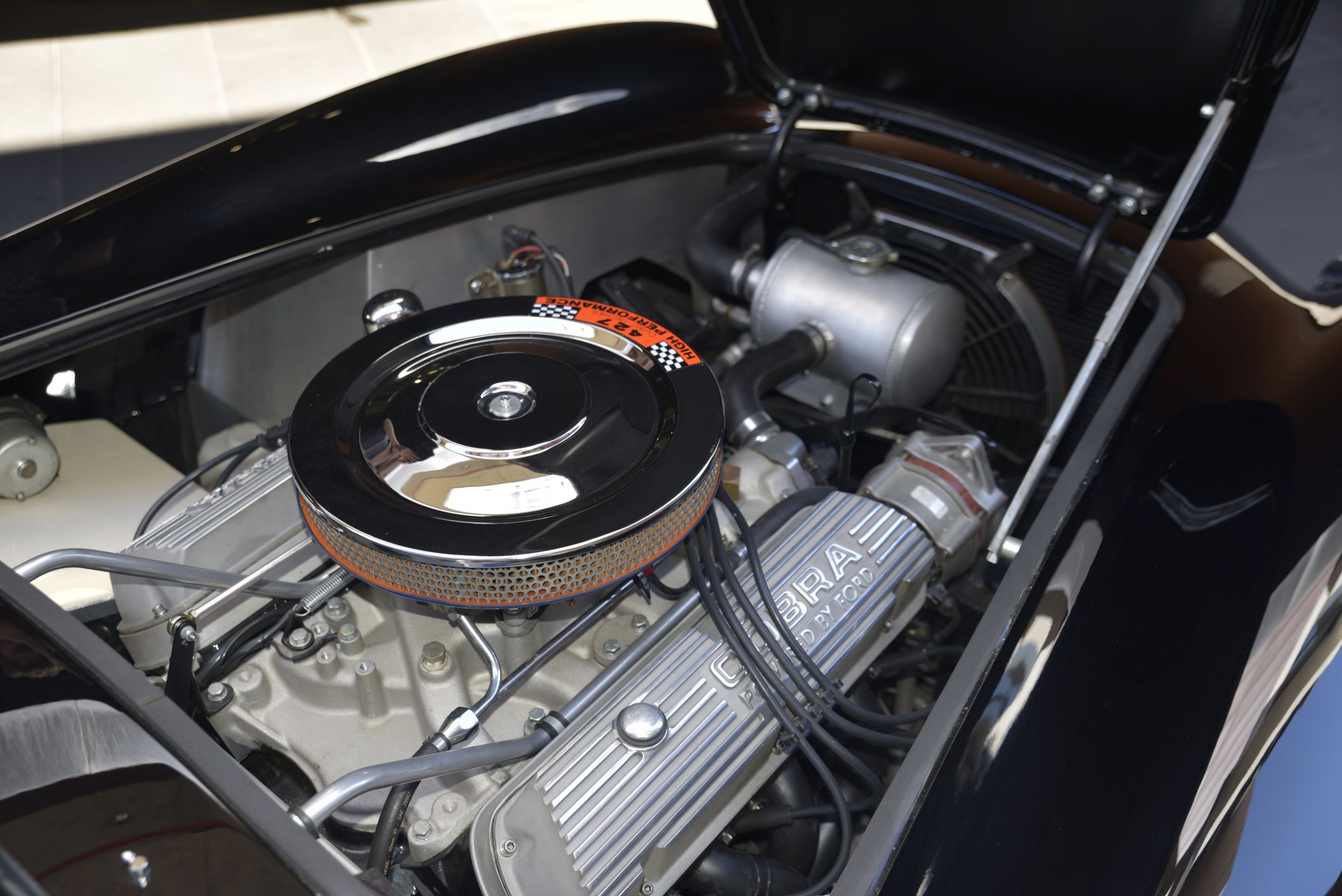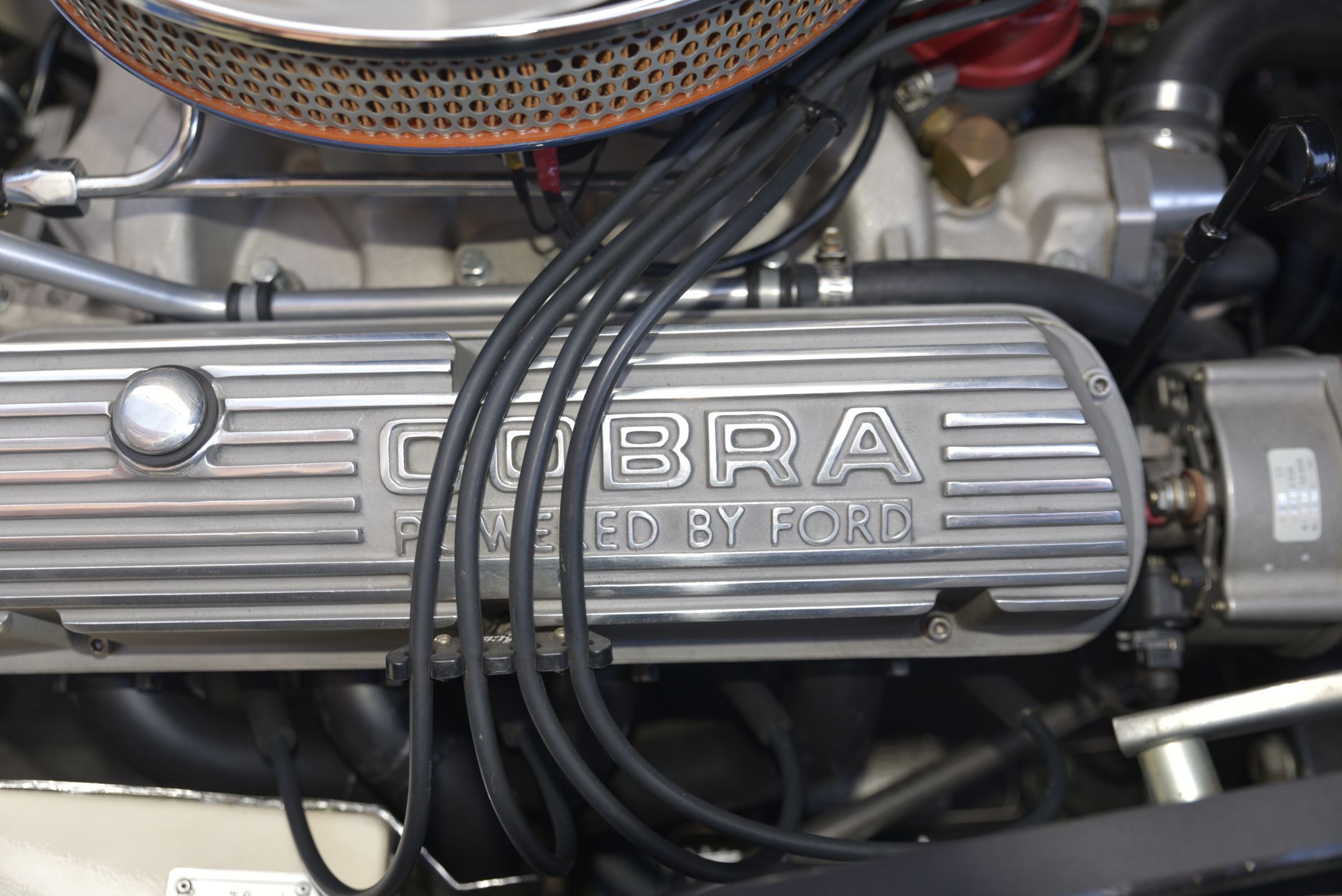 All alloy body built by Brian Angliss under AC license. Basically a MK III with independent coil suspension. This MK IV has had a massive amount of time and money modifying it to a 427 s/c body shape including altering door shape and powered by a 397 which is bored and stroked 351 but had alloy Cobra 289 rockers and alloy FIA style header tank. It is also fitted with a low-rise manifold with a 650 holley and standard cobra and air cleaner.