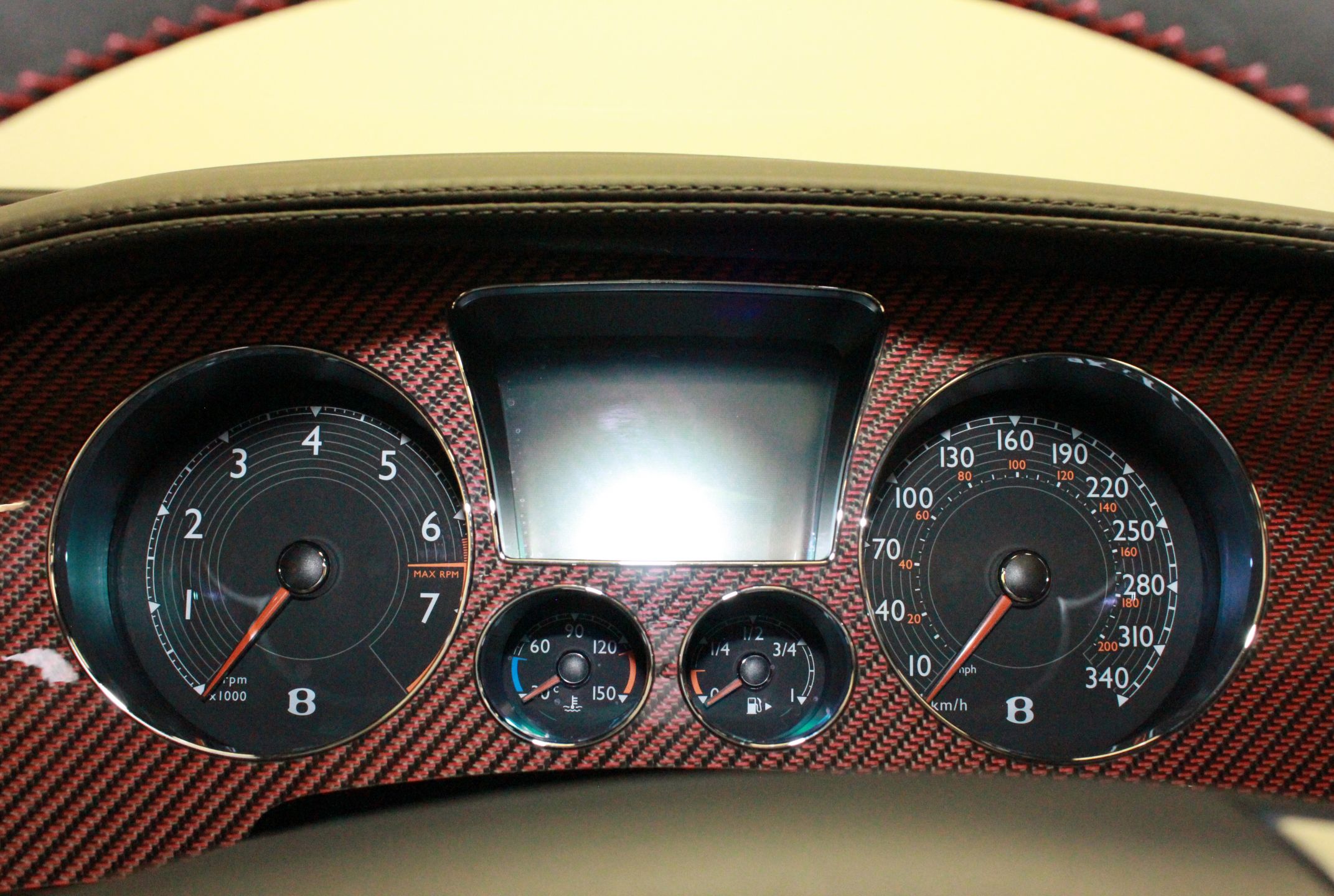 - Red & black woven carbon fibre dash.