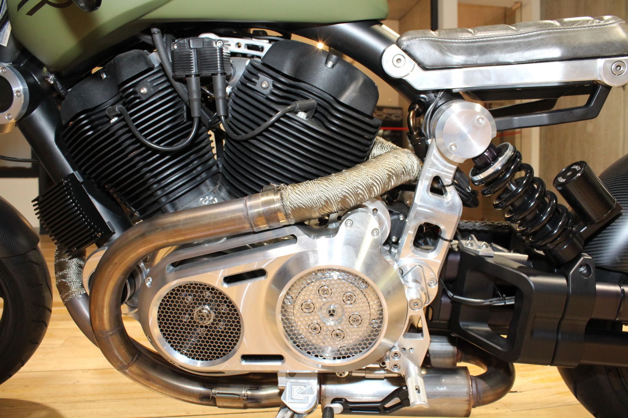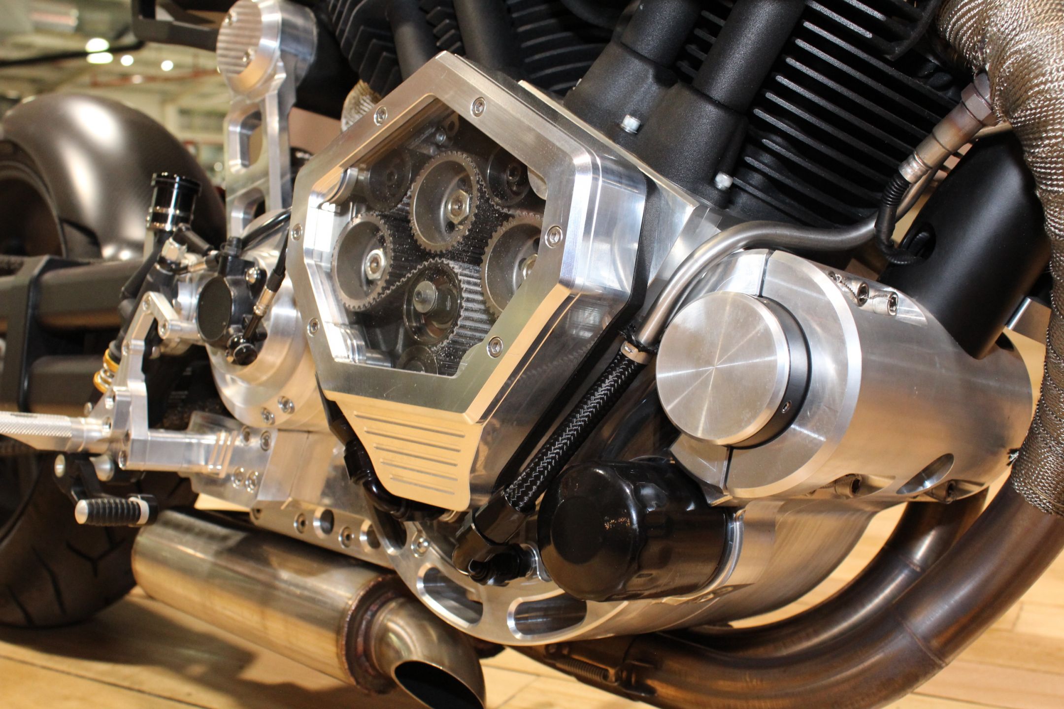 From the crafted billet aluminium case to the exposed cam belts, you can see the American passion.