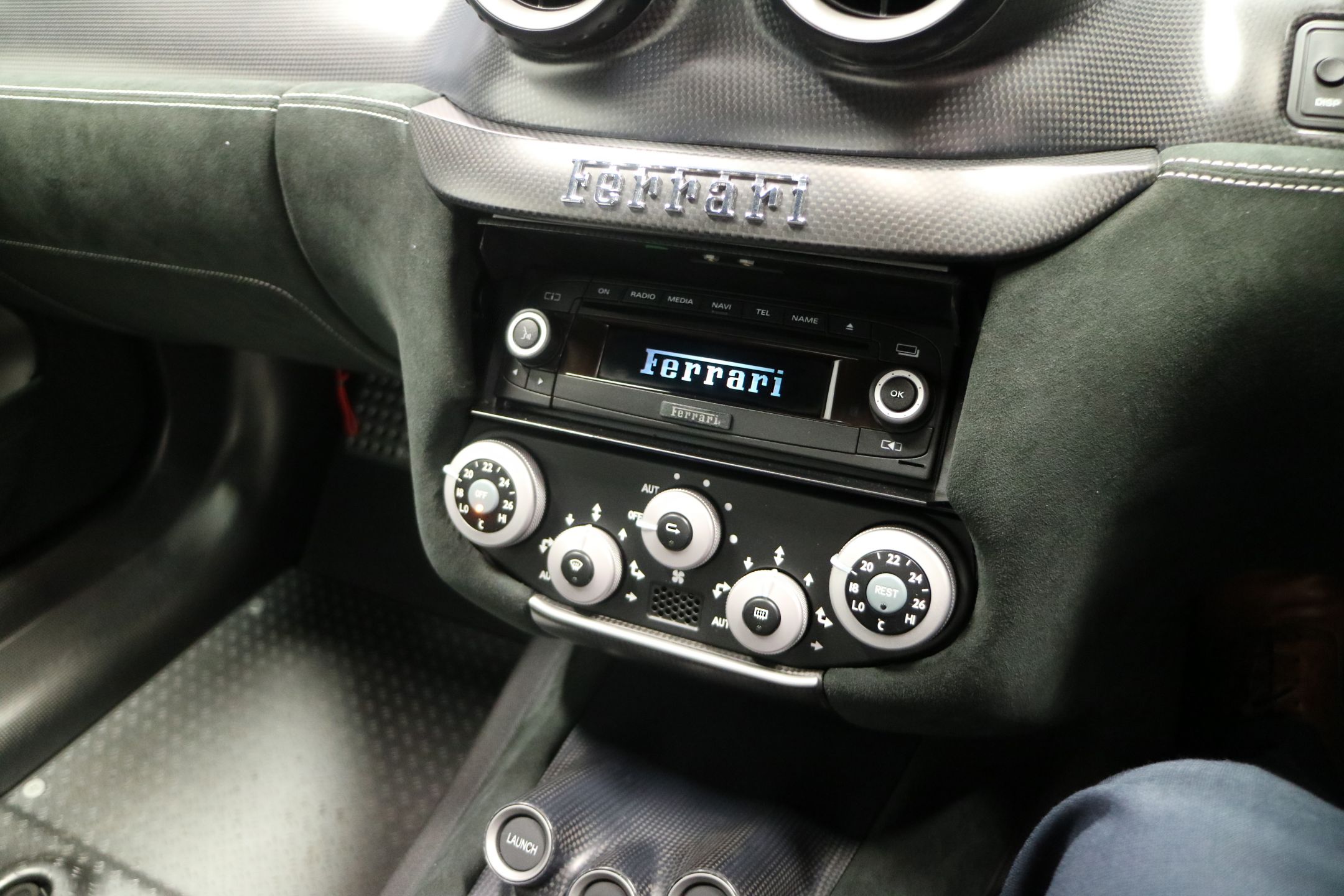 - Dark suede interior with aluminium floors and carbon fibre trim.