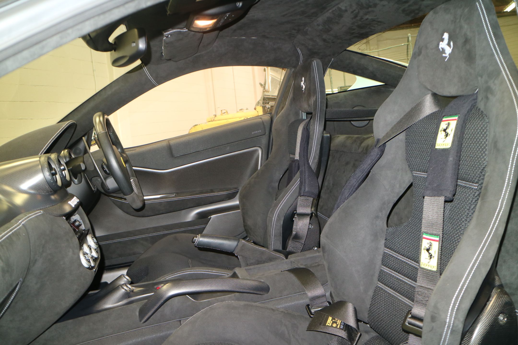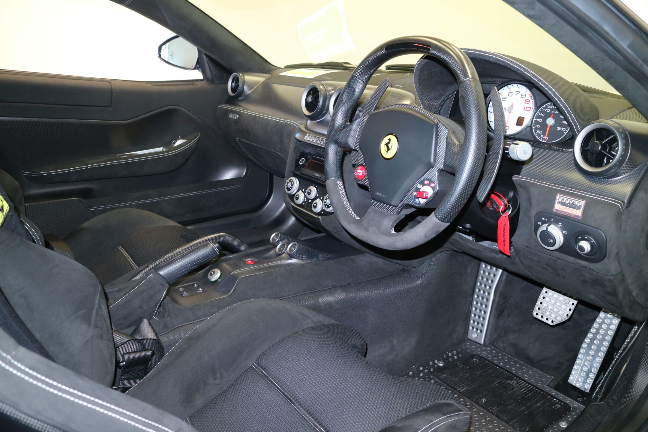 - Dark suede interior with aluminium floors and carbon fibre trim.