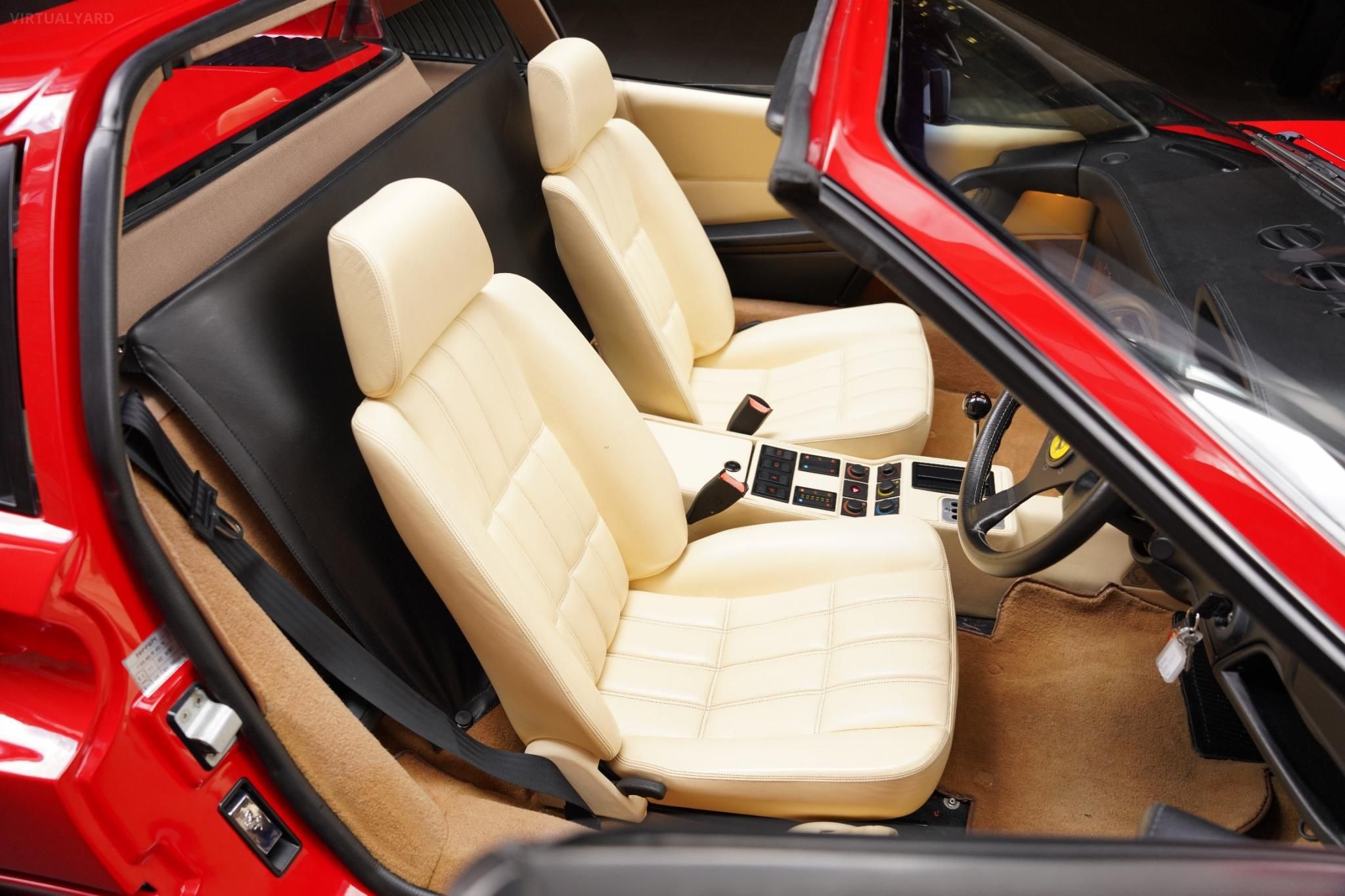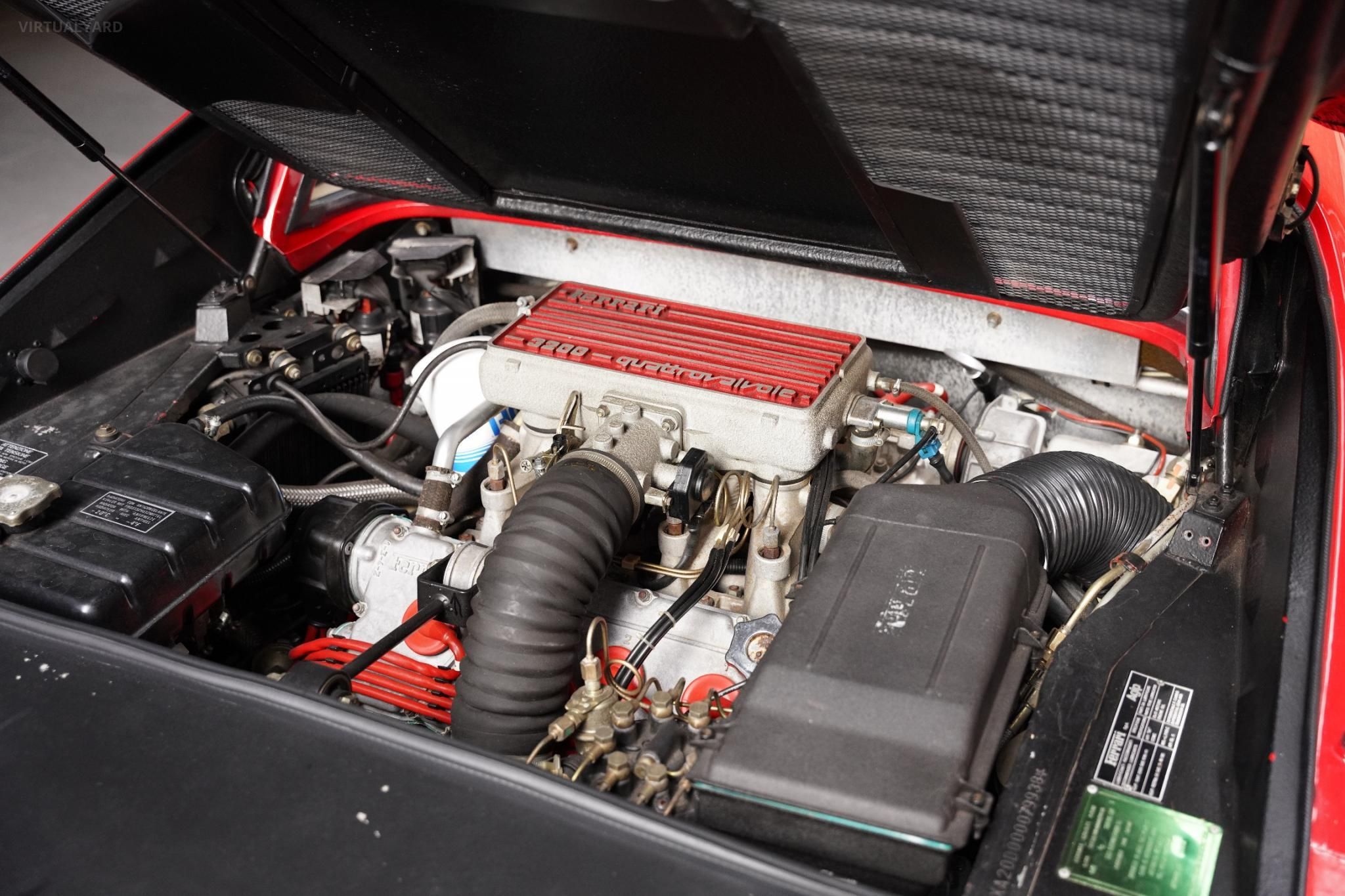 The Pininfarina-designed body is flawless, exhibiting a pristine appearance as if it were brand new. The striking Rosso Corsa paintwork is immaculate, and the exterior features, including the pop-up headlights, integrated fog lights, side air intakes, and quad exhaust tips, add to the allure of this 80s icon.