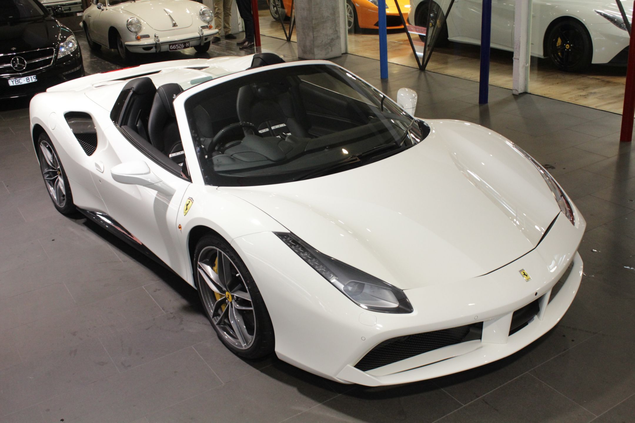 We are proud to offer this stunning and "LIKE NEW" Australian Delivered 2017 Ferrari 488 Spider which is finished in stunning and most desired Bianco Avus White Coachwork with soft Nero Napa cabin with Nero Mats. This beautiful 1 collector owner has just been received into our inventory and is probably one of the most if not the most heavily optioned 488 Spider's imported to Australia.