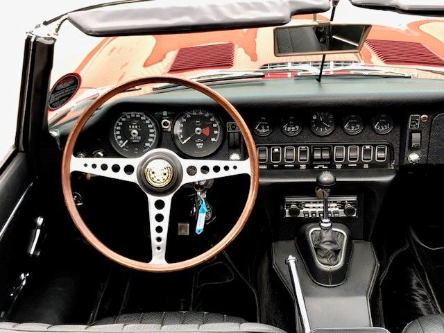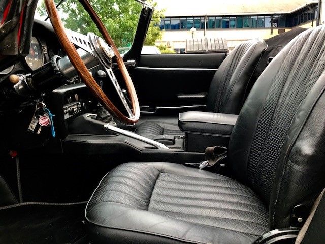Finished in Signal Red coachwork with Ebony Black hide and matching Black vinyl soft top. the car stands elegantly as the day it rolled off the production line with newly fitted chrome wire wheels with two ear spinners. The first owner purchased this car in Atlanta, Georgia, selling it to the second owner on March 15th, 1977. The third owner is then known to have purchased the car June 20th, 1989. He retained the car for more than twenty years, selling it in 2012. During his long-term ownership, the car spent the vast majority of its time in the Metro Atlanta where the car was restored. During the restoration, the head was removed and replaced with a Series III XJ6 head. These later heads have larger valves and breathe better than the earlier heads, which improves performance. Additionally, the car was converted to the triple SU carburetor configuration of the Series I cars (US spec Series II cars originally had twin Stromberg carburetors for emissions reasons).