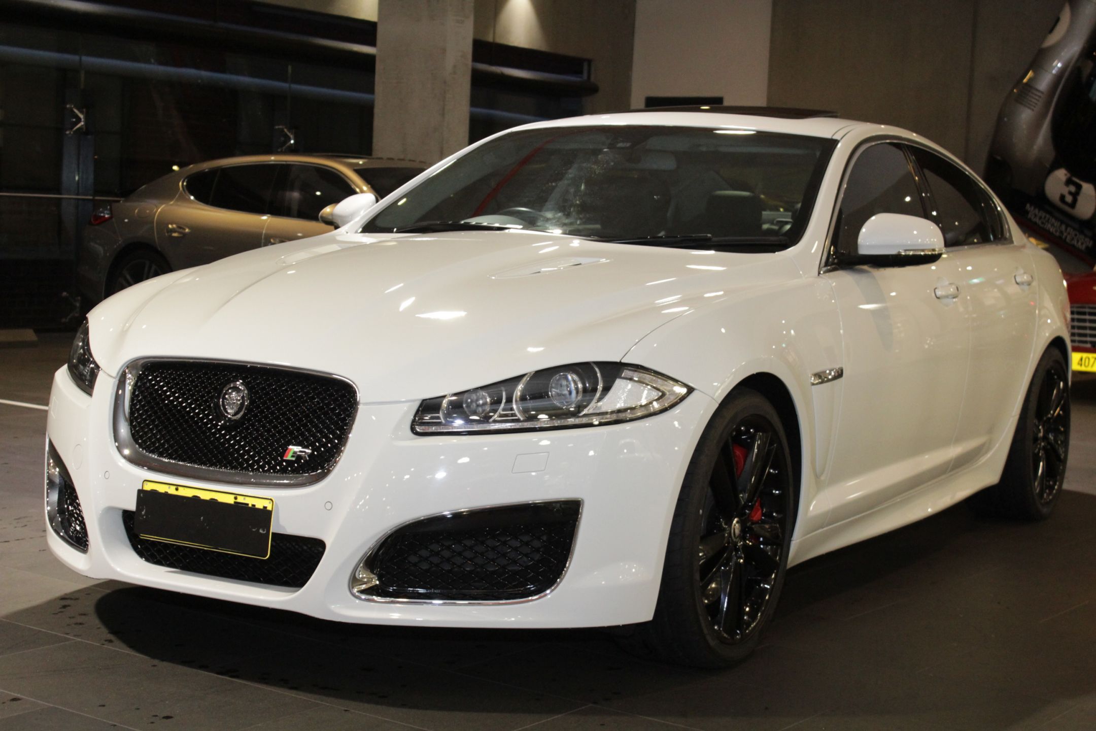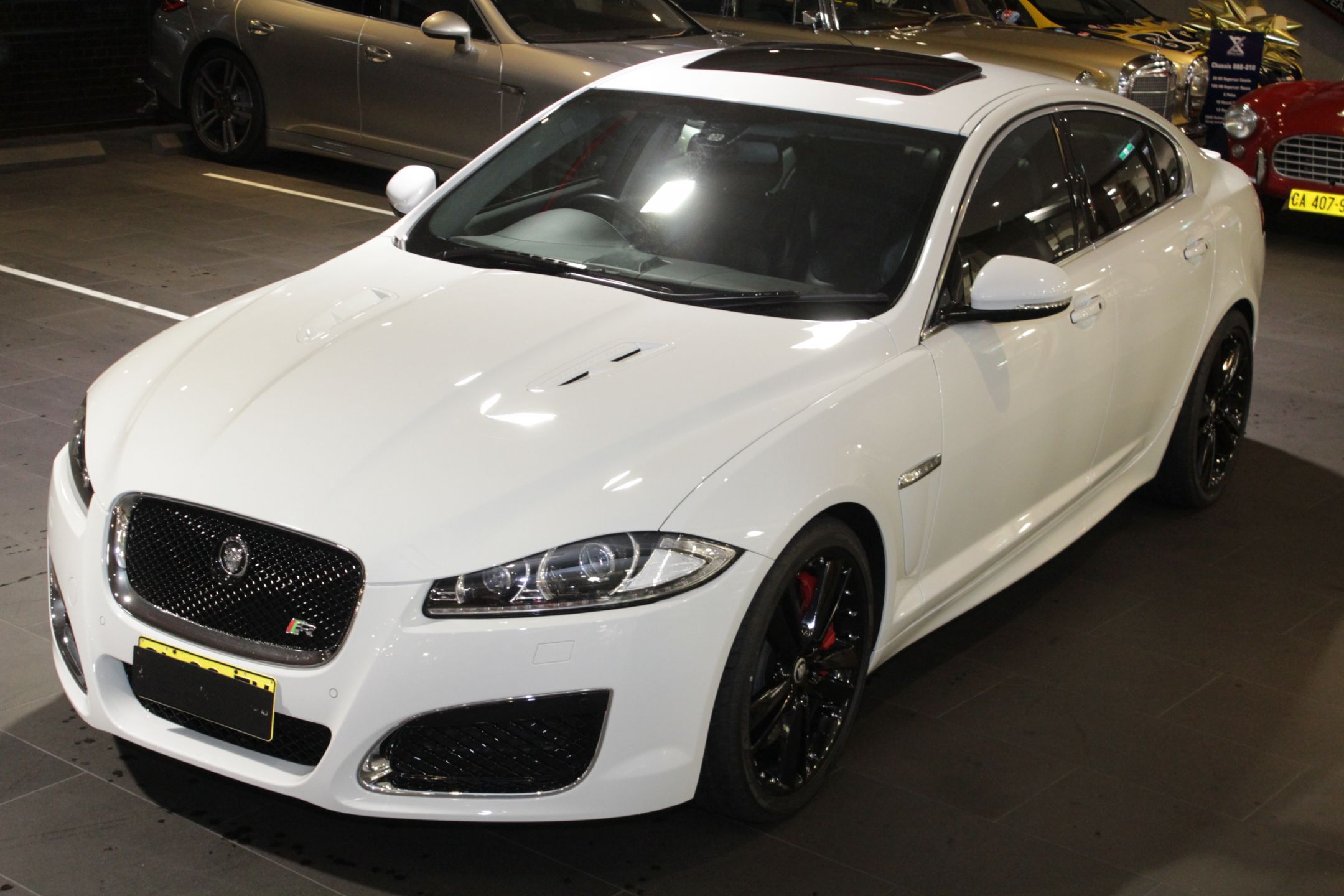 2012 MY13 JAGUAR XF X250 "XF-R" S/CHARGED SEDAN - AUSTRALIAN DELIVERED - UPDATE 5.0L S/CHARGED ENGINE - ABSOLUTE TOP OF THE RANGE XF - ONLY 32,800 KLMS FROM NEW - 1 PRIVATE OWNER FROM NEW - STUNNING POLARIS WHITE COACHWORK - SOFT BLACK NAPA LEATHER CABIN - $240K REPLACEMENT VALUE - FACTORY ELECTRIC SUNROOF - FULL GREY ALCANTARA ROOF LINING - FACTORY SATELLITE NAVIGATION - FACTORY BLACK- OUT PACKAGE - LED DAYTIME DRIVING LIGHTS - DYNAMIC HEADLIGHTS - FULL LUXURY PACKAGE - 20" FACTORY BLACK ALLOYS - KEY-LESS ENTRY & START - REVERSING CAMERA - LUXURY VENTILATED SEATING - FOLDING MIRRORS - FULL MEMORY PACKAGE FRONT SEATS - BOWEN & WILKINS HIFI UPGRADE - FULL JAGUAR SERVICE HISTORY - BESPOKE SPECIAL ORDER - CHROME MESH SPORTS INTERIOR - BLUETOOTH, IPOD & USB CONNECTIVITY - CONTRASTING STITCHING CABIN - MANY MORE FEATURES & SPEC'S ON JAGUAR - AUSTRALIA WIDE DELIVERY AVAILABLE - FULL PPSR CHECK DONE - GUARANTEED TITLE - EXTENDED WARRANTIES - ANY INSPECTION WELCOME - 20 MAJOR FINANCE LENDERS - FAMILY OWNED DEALERSHIP EST 1911