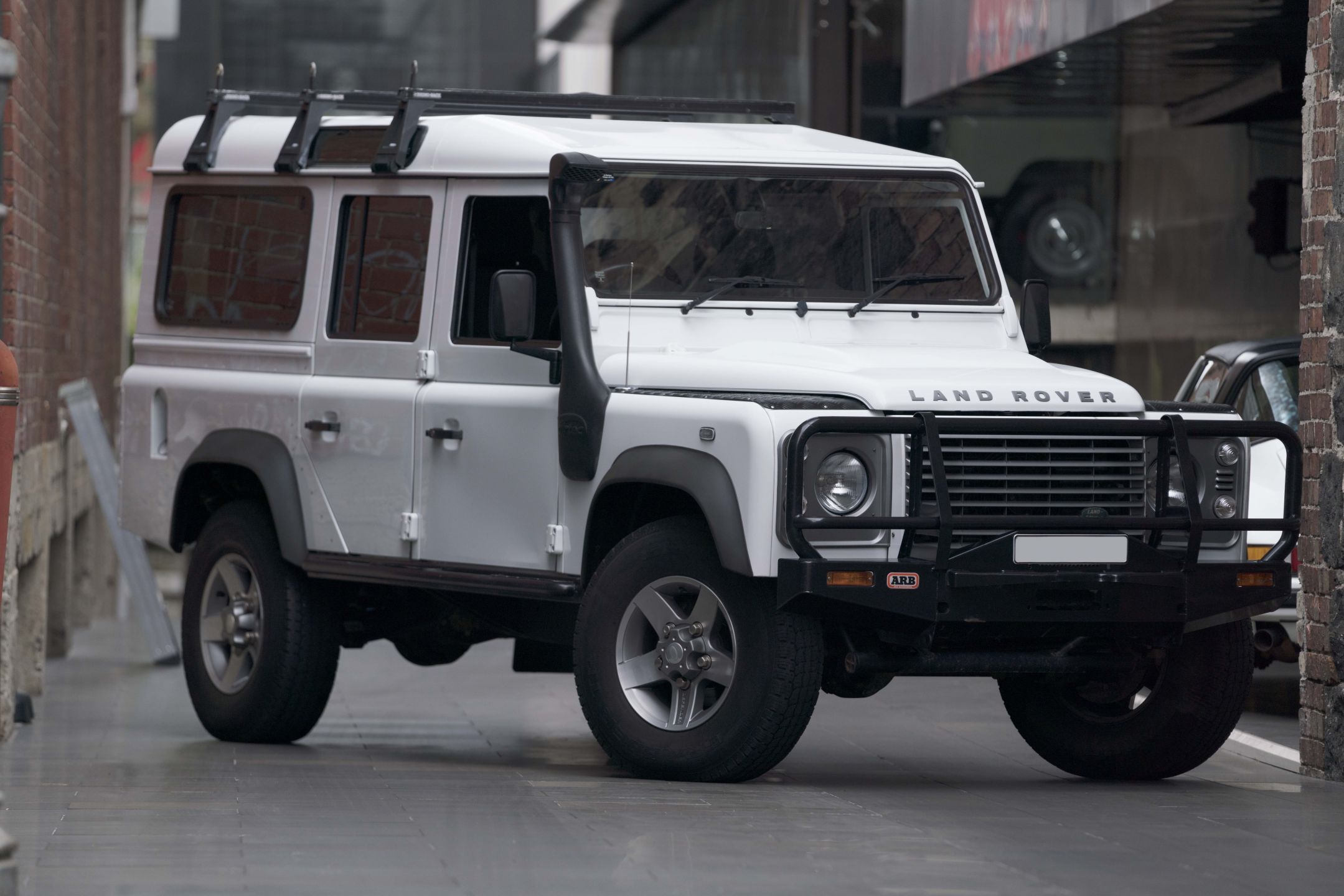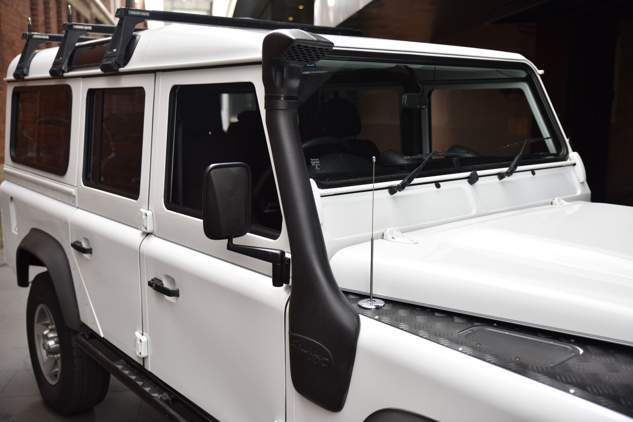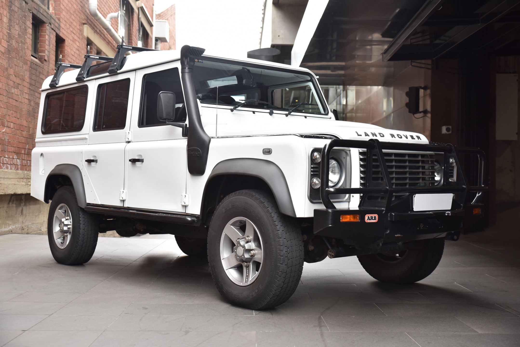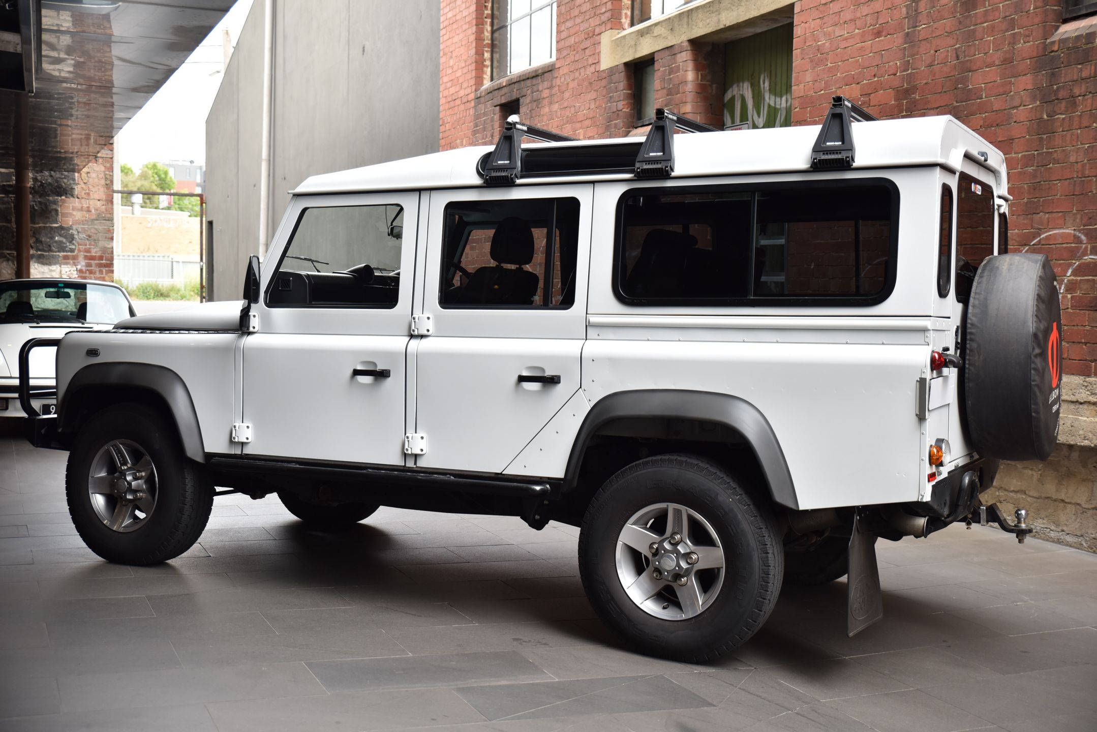 This 2014 Land Rover Defender 110 Series 5 Dr Wagon is finished in Classic Fuji White coachwork with matching Black cabin.