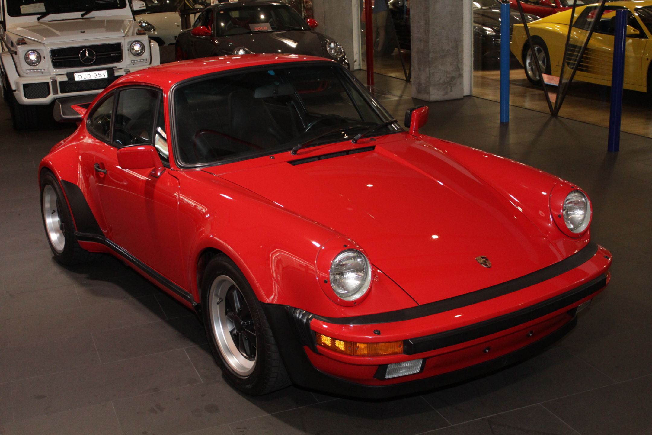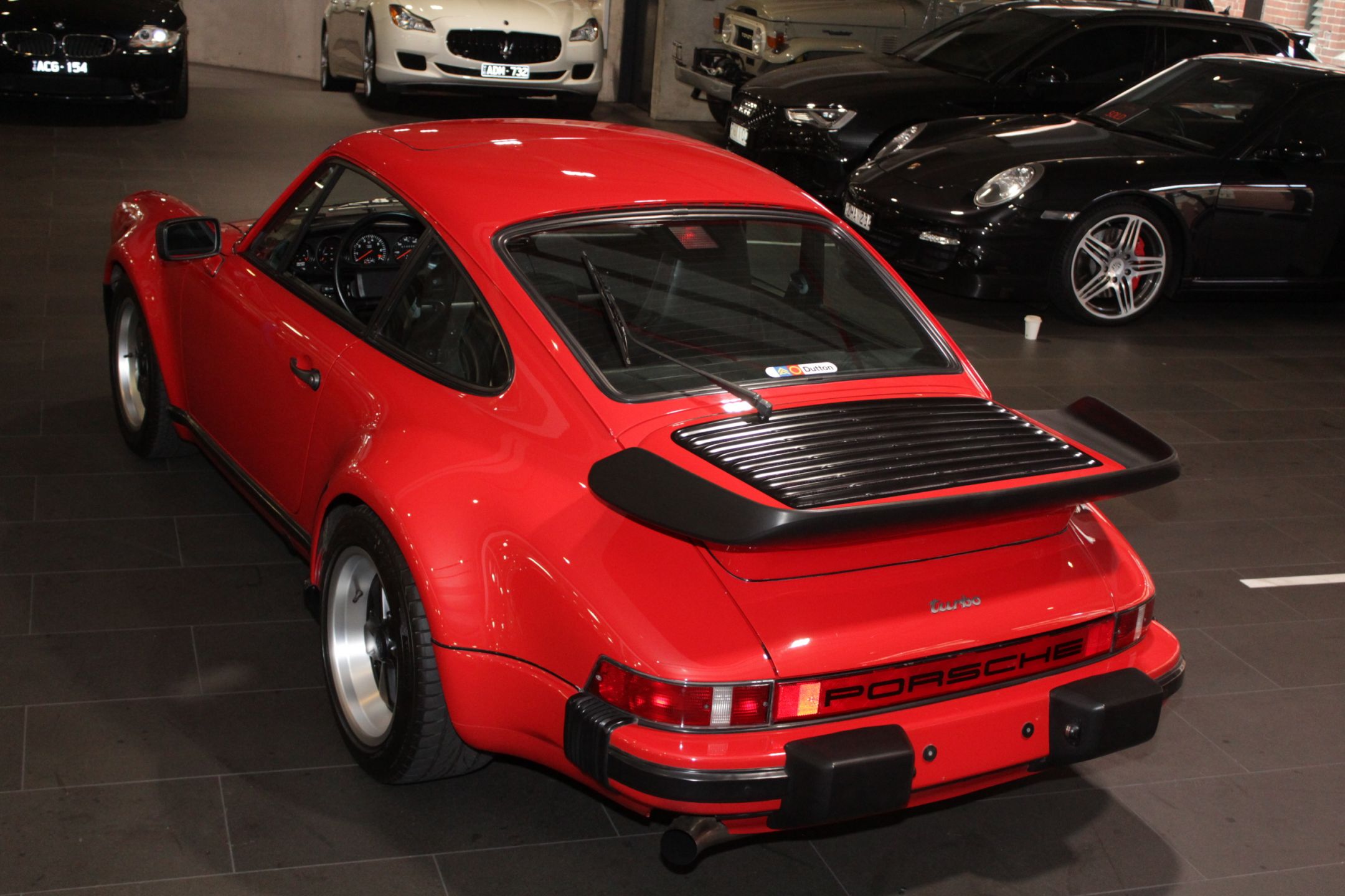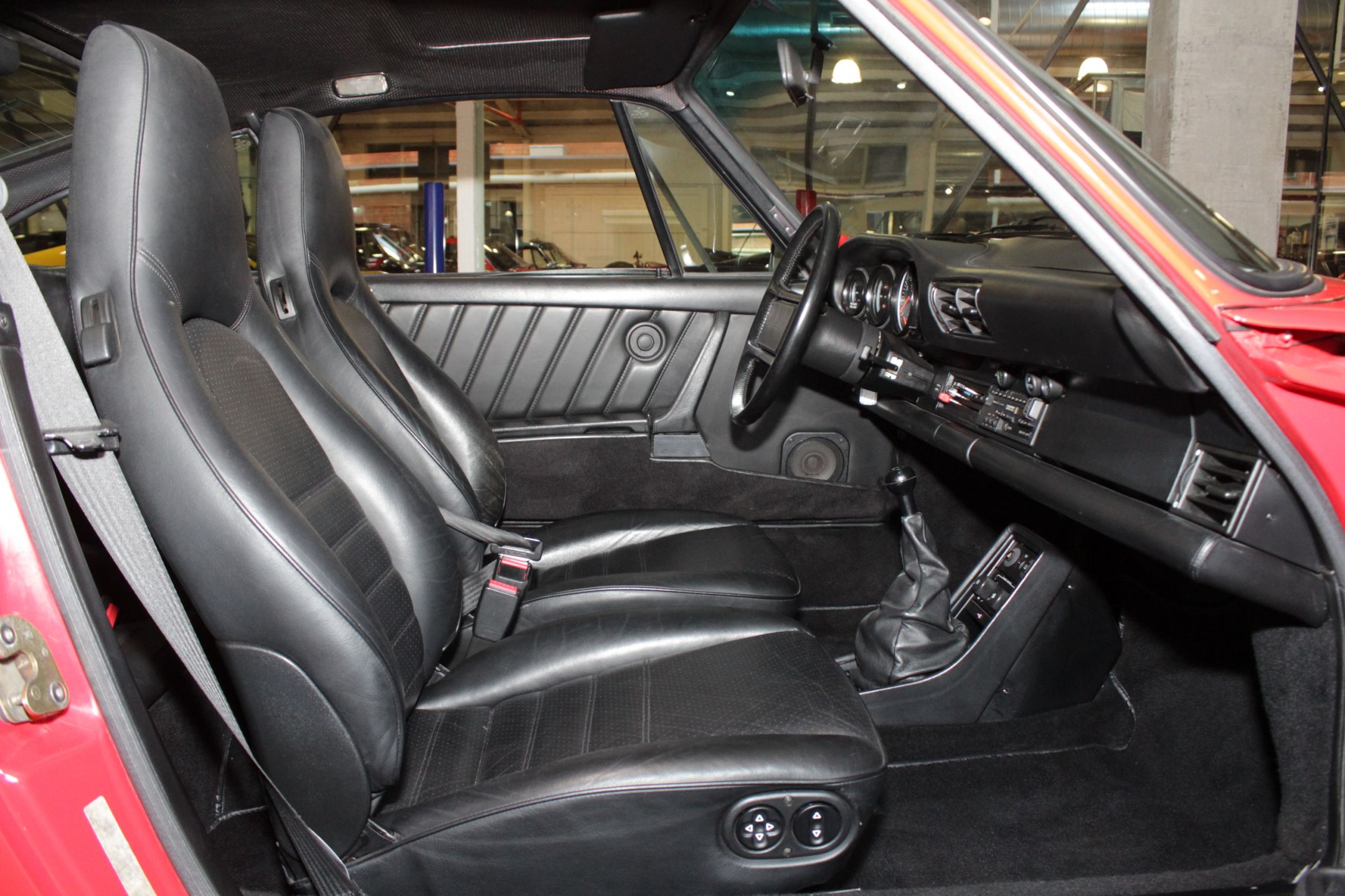 In the desirable colour combination of Guards Red over black leather interior.