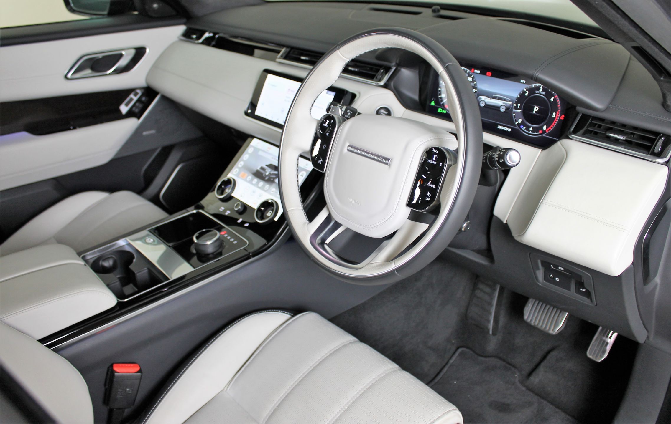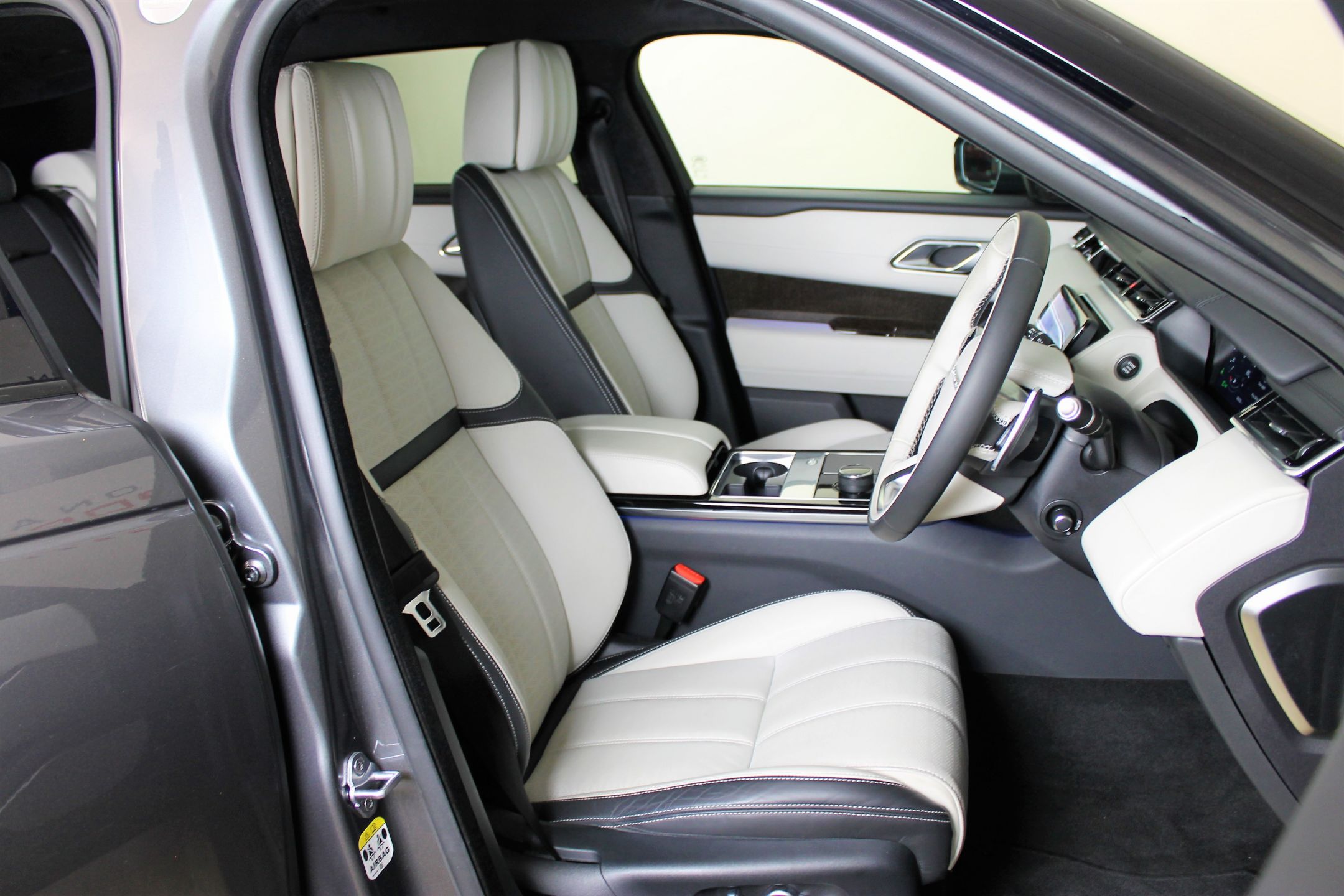 Complimenting the exterior the Range Rover Velar First Edition interior is finished to the highest possible level and includes perforated Windsor leather in Light Oyster/Ebony Alston headlining, Carbon Fibre with Copper Wire Weave trim finishers and a First Edition badge on both its B-pillars and interior finishers.